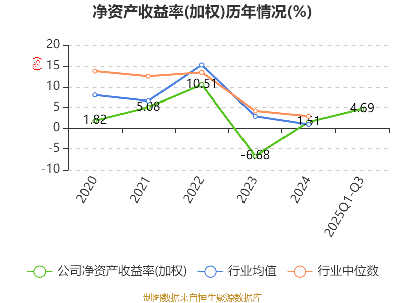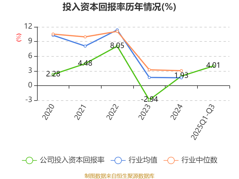 盈利能力方面, 2025年前三季度公司加权平均净资产收益率为4.69%,同比上升4.18个百分点。公司2025年前三季度投入资本回报率为4.01%,较上年同期上升2.95个百分点。