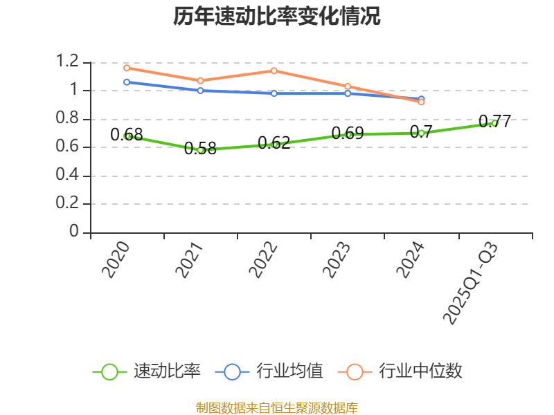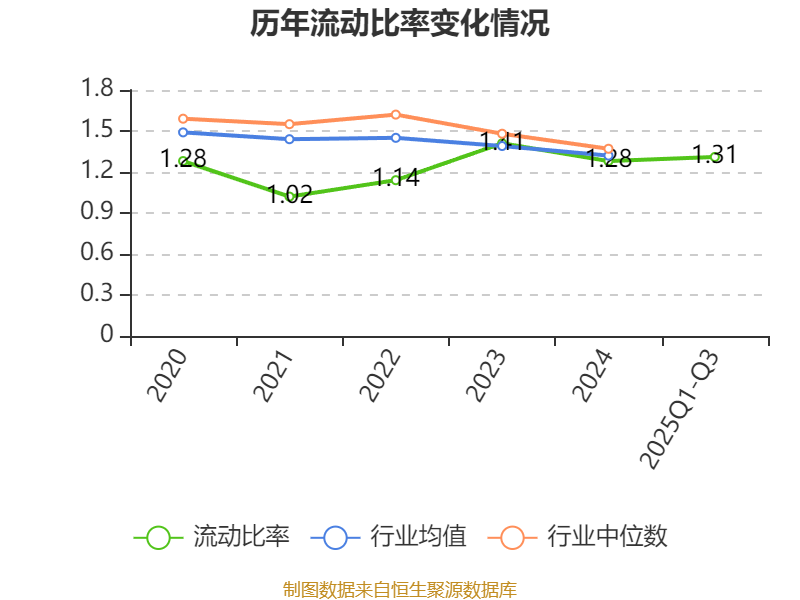 2025年前三季度,公司流动比率为1.31,速动比率为0.77。
