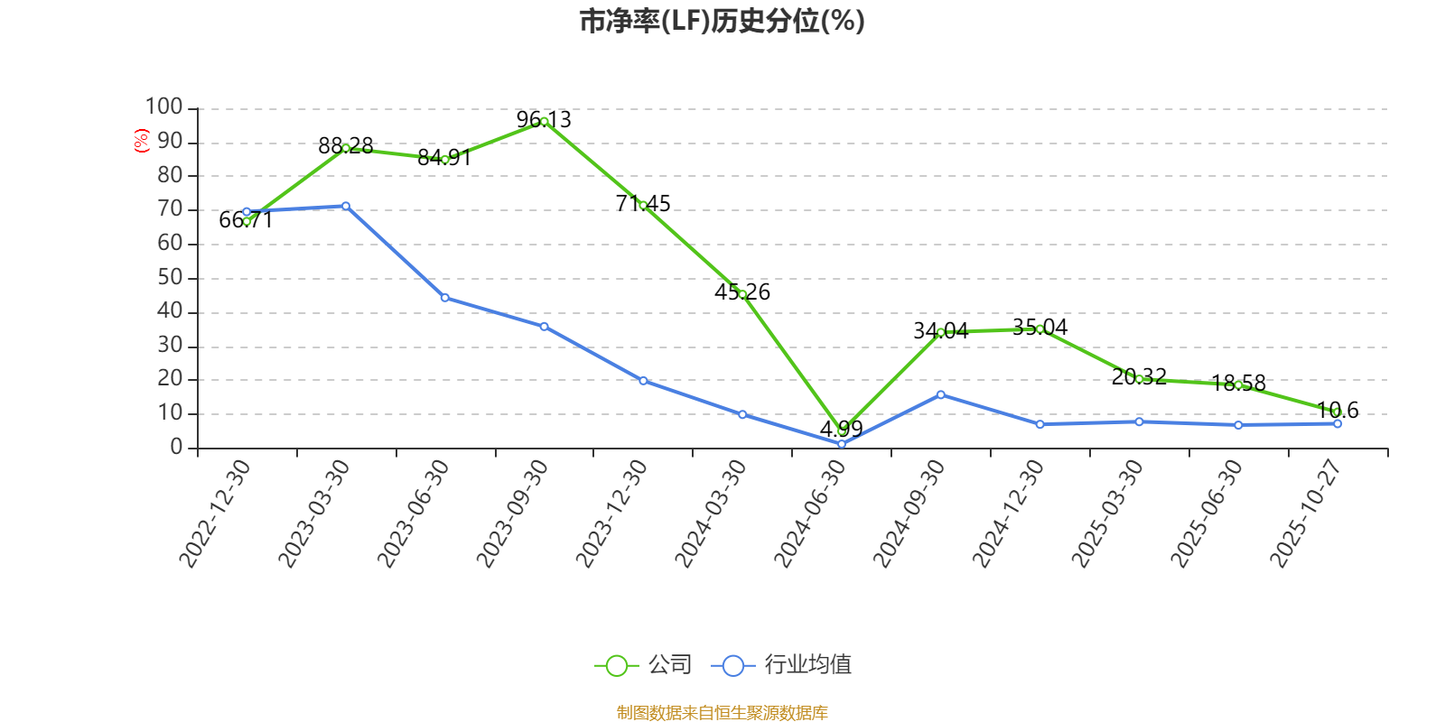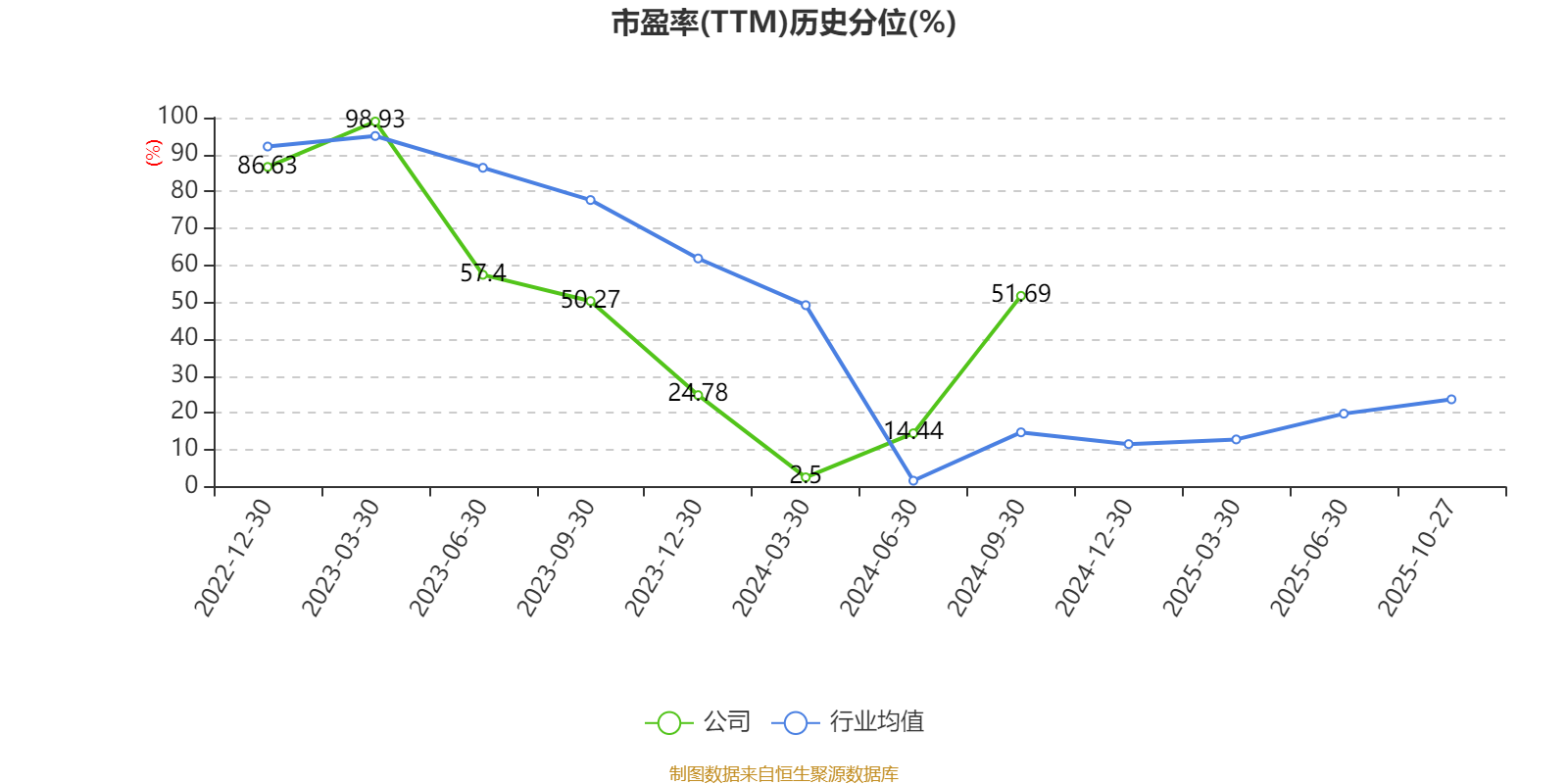 市盈率、市净率为负时,不显示当期分位数,会导致折线图中断。