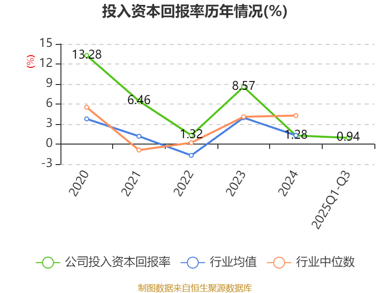 盈利能力方面, 2025年前三季度公司加权平均净资产收益率为0.77%,同比上升0.07个百分点。公司2025年前三季度投入资本回报率为0.94%,较上年同期下降0.07个百分点。