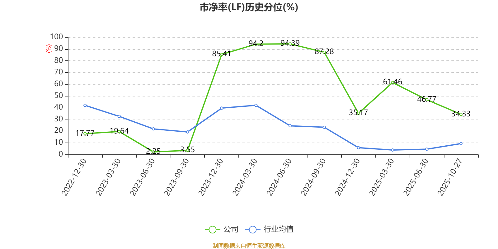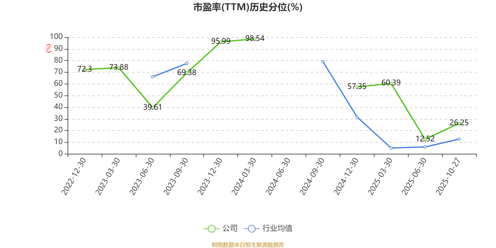 市盈率、市净率为负时,不显示当期分位数,会导致折线图中断。