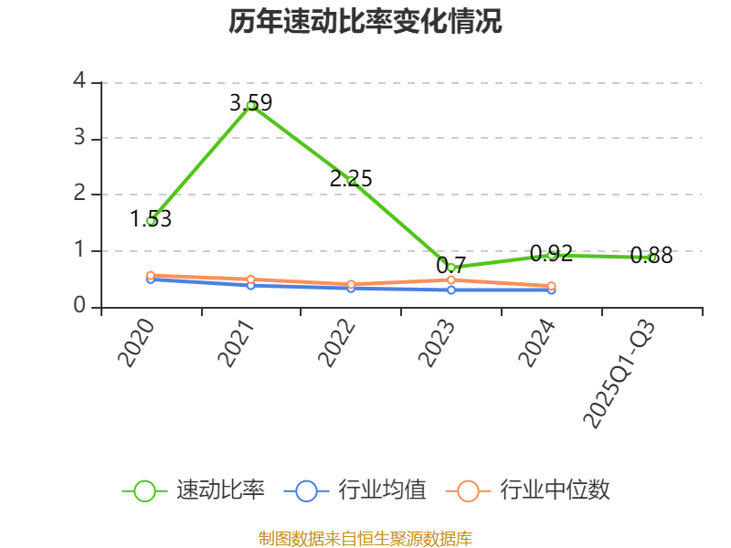 2025年前三季度,公司流动比率为2.1,速动比率为0.88。