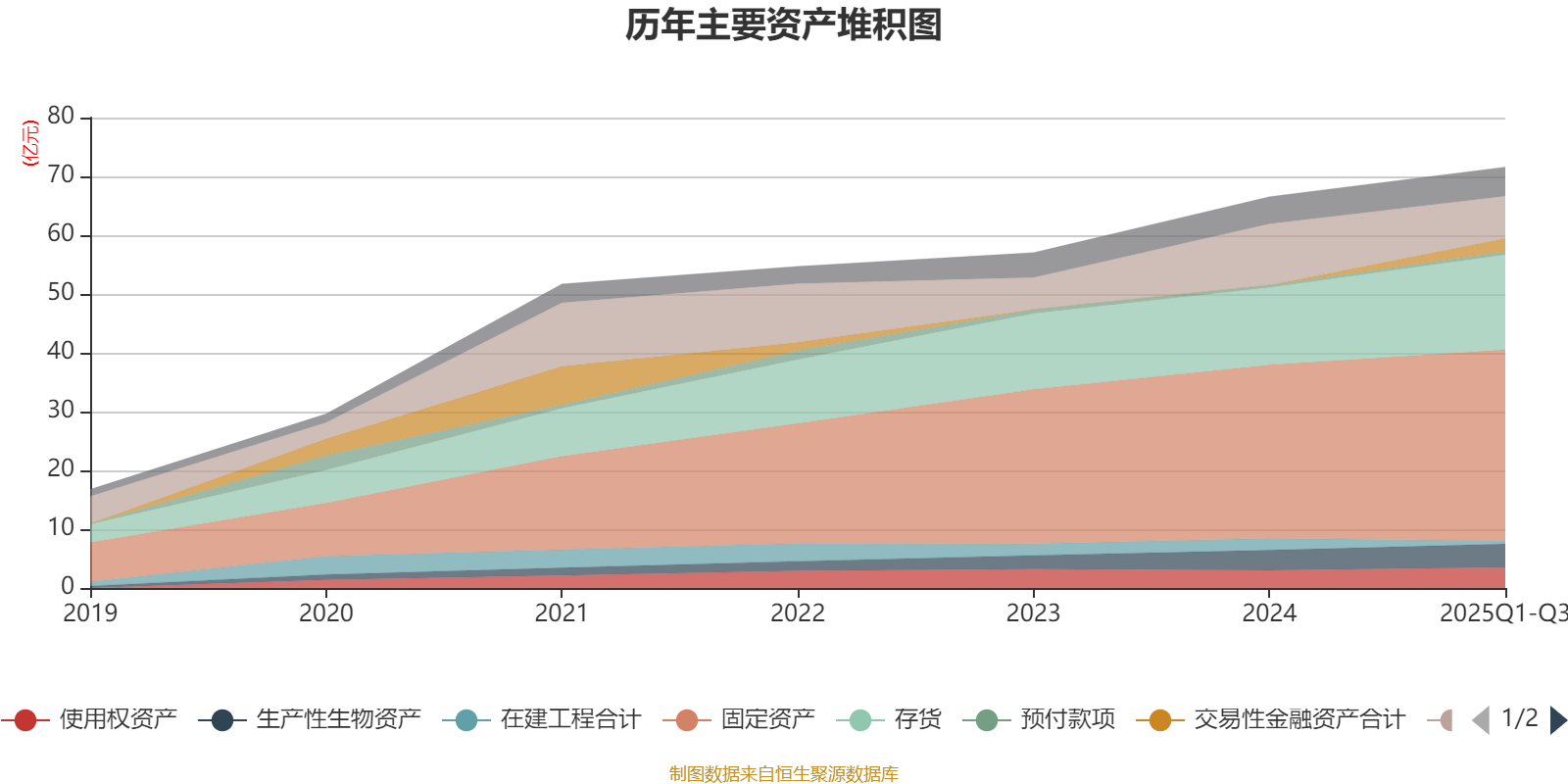资产重大变化方面,截至2025年三季度末,公司货币资金较上年末减少31.11%,占公司总资产比重下降5.63个百分点;交易性金融资产合计占公司总资产的3.08%,上年末为0;存货较上年末增加23.21%,占公司总资产比重上升2.86个百分点;在建工程合计较上年末减少72.18%,占公司总资产比重下降2.22个百分点。