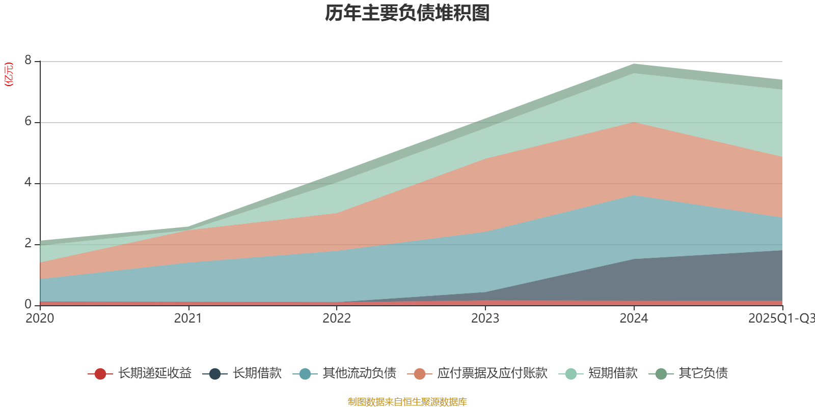 负债重大变化方面,截至2025年三季度末,公司其他流动负债较上年末减少48.73%,占公司总资产比重下降5.44个百分点;短期借款较上年末增加37.4%,占公司总资产比重上升3.32个百分点;应付票据及应付账款较上年末减少17.03%,占公司总资产比重下降2.11个百分点;长期借款较上年末增加21.59%,占公司总资产比重上升1.66个百分点。