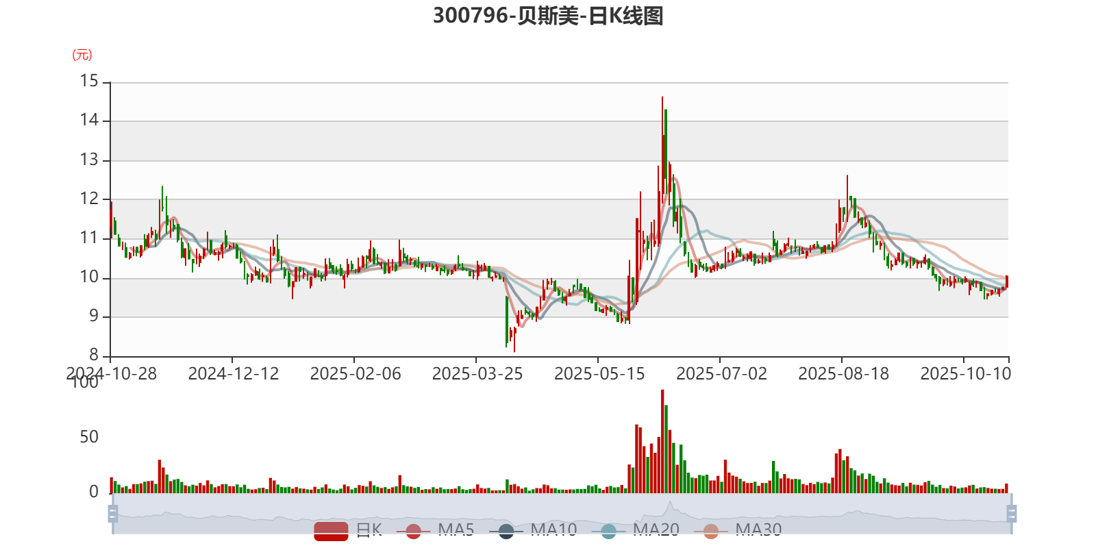 以10月27日收盘价计算,贝斯美目前市盈率(TTM)约为-908.04倍,市净率(LF)约2.11倍,市销率(TTM)约2.47倍。
