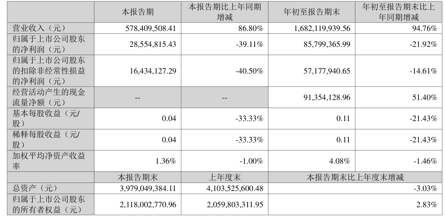 中证智能财讯苏奥传感(300507)10月28日披露2025年第三季度报告。前三季度公司实现营业总收入16.82亿元,同比增长94.76%;归母净利润8579.94万元,同比下降21.92%;扣非净利润5717.79万元,同比下降14.61%;经营活动产生的现金流量净额为9135.41万元,同比增长51.40%;报告期内,苏奥传感基本每股收益为0.11元,加权平均净资产收益率为4.08%。