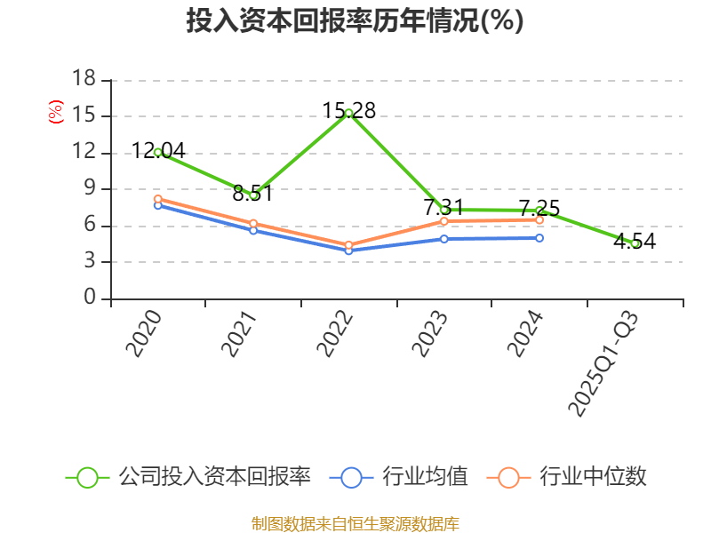 盈利能力方面, 2025年前三季度公司加权平均净资产收益率为4.08%,同比下降1.46个百分点。公司2025年前三季度投入资本回报率为4.54%,较上年同期下降1.34个百分点。