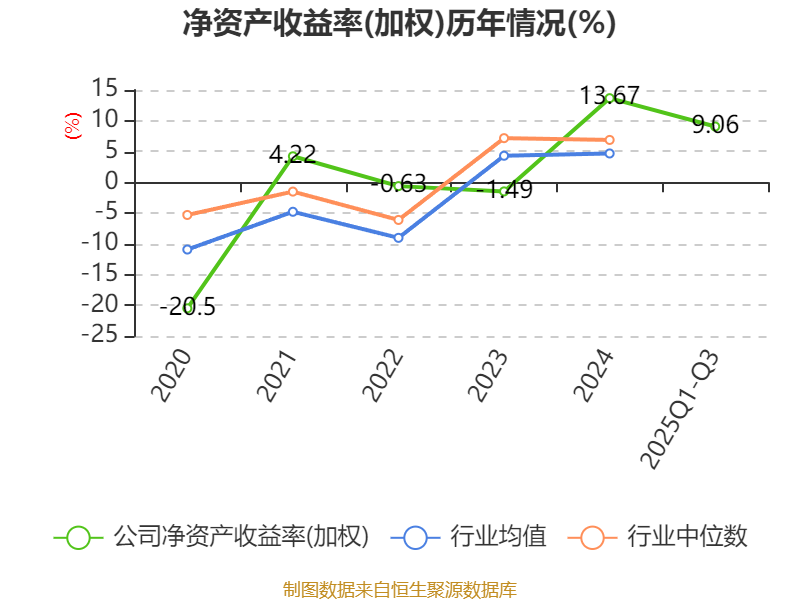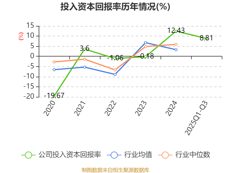 盈利能力方面, 2025年前三季度公司加权平均净资产收益率为9.06%,同比下降4.05个百分点。公司2025年前三季度投入资本回报率为8.81%,较上年同期下降3.23个百分点。