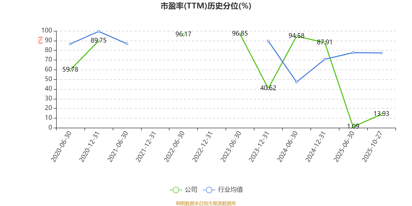 市盈率、市净率为负时,不显示当期分位数,会导致折线图中断。