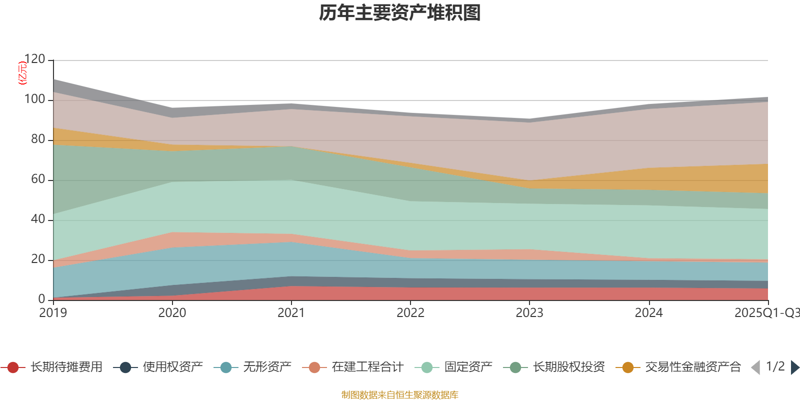 资产重大变化方面,截至2025年三季度末,公司交易性金融资产合计较上年末增加33%,占公司总资产比重上升3.2个百分点;固定资产较上年末减少4.9%,占公司总资产比重下降2.21个百分点;长期待摊费用较上年末减少7.16%,占公司总资产比重下降0.65个百分点;无形资产较上年末减少2.44%,占公司总资产比重下降0.56个百分点。
