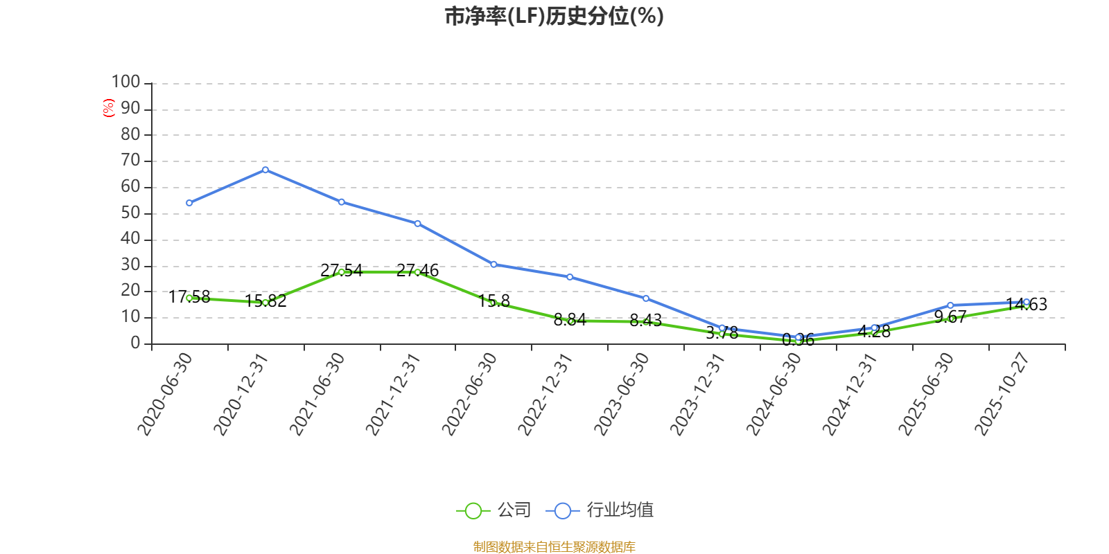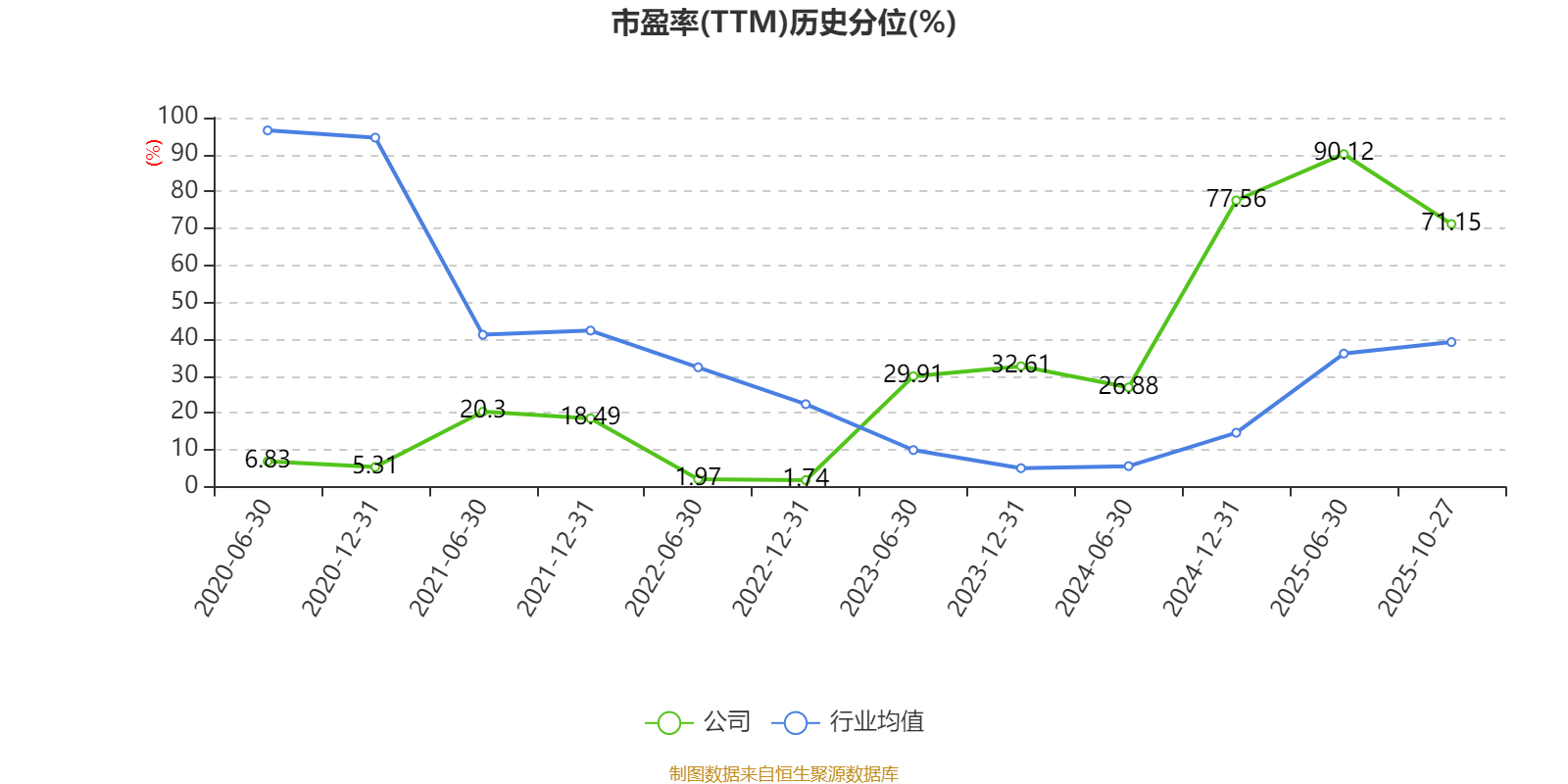 市盈率、市净率为负时,不显示当期分位数,会导致折线图中断。