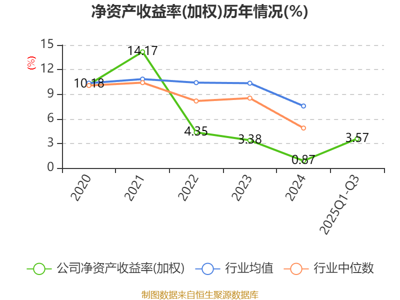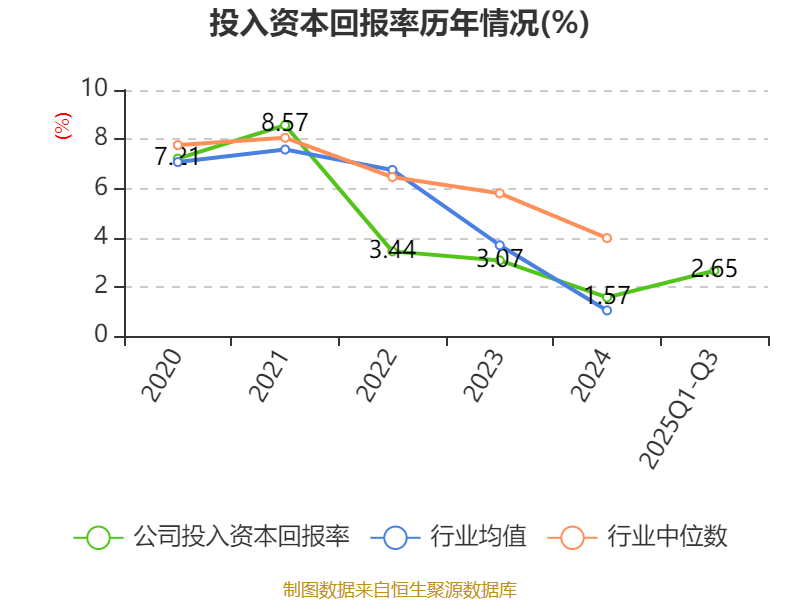 盈利能力方面, 2025年前三季度公司加权平均净资产收益率为3.57%,同比上升2.21个百分点。公司2025年前三季度投入资本回报率为2.65%,较上年同期上升0.99个百分点。