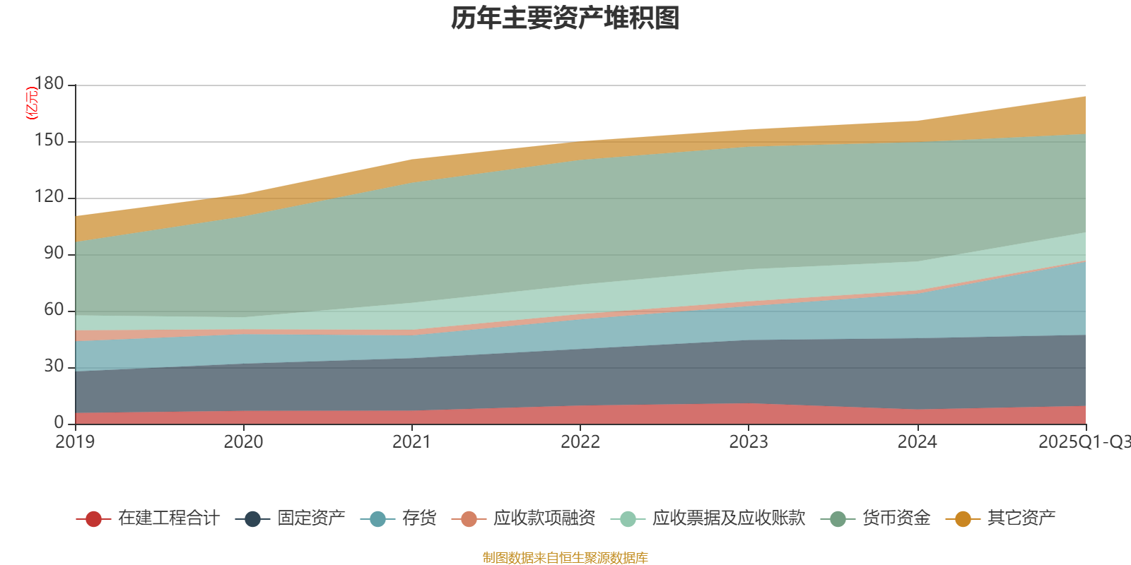 资产重大变化方面,截至2025年三季度末,公司货币资金较上年末减少17.53%,占公司总资产比重下降9.37个百分点;存货较上年末增加64.55%,占公司总资产比重上升7.66个百分点;预付款项较上年末增加347.19%,占公司总资产比重上升3.08个百分点;固定资产较上年末减少0.28%,占公司总资产比重下降1.83个百分点。