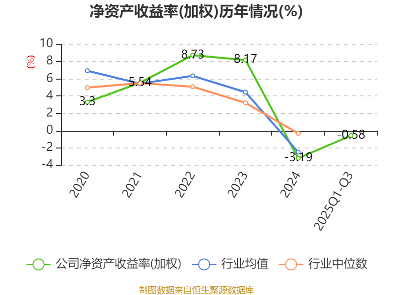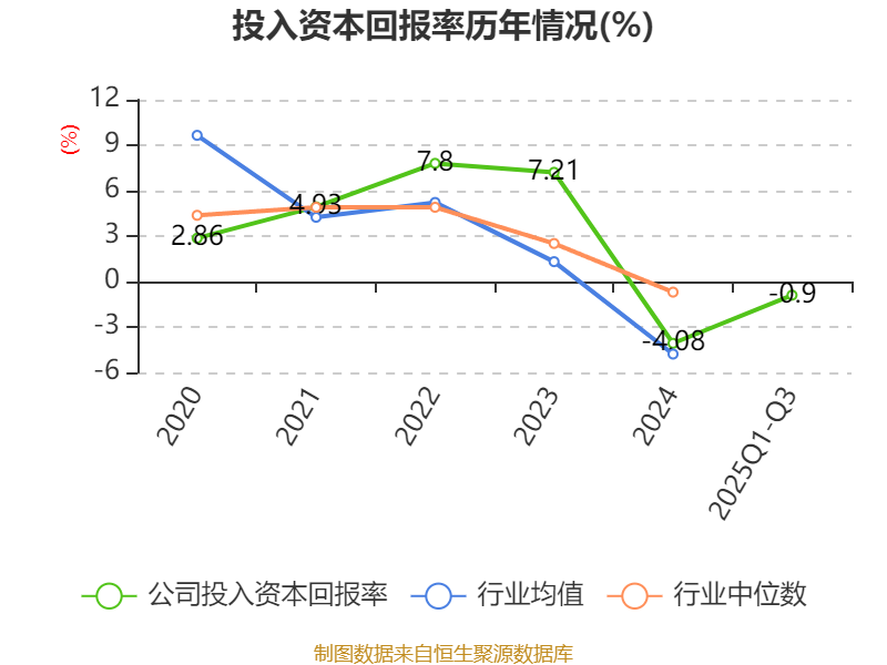 盈利能力方面, 2025年前三季度公司加权平均净资产收益率为-0.58%,同比持平。公司2025年前三季度投入资本回报率为-0.9%,较上年同期下降0.08个百分点。
