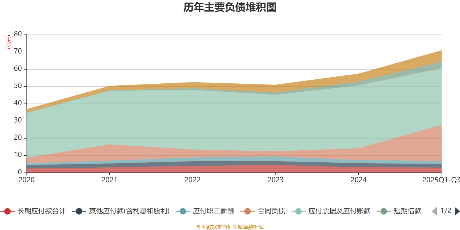 负债重大变化方面,截至2025年三季度末,公司合同负债较上年末增加208.71%,占公司总资产比重上升7.82个百分点;应付票据及应付账款较上年末减少9.98%,占公司总资产比重下降3.8个百分点;短期借款较上年末增加72.19%,占公司总资产比重上升0.81个百分点;其他流动负债较上年末增加192.49%,占公司总资产比重上升0.78个百分点。