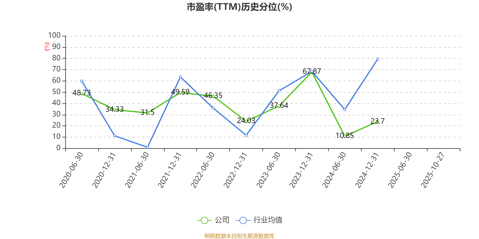 市盈率、市净率为负时,不显示当期分位数,会导致折线图中断。