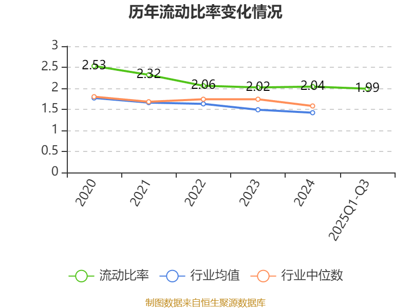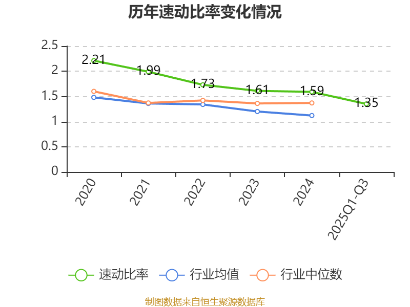 2025年前三季度,公司流动比率为1.99,速动比率为1.35。