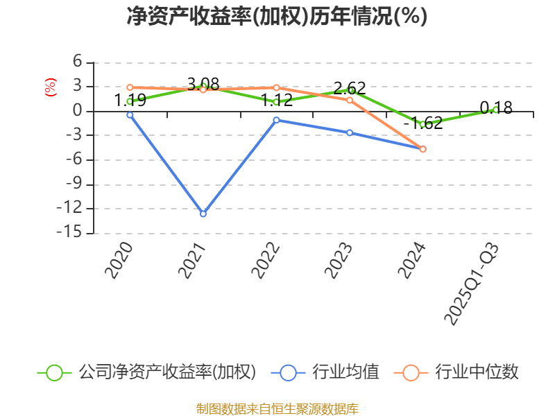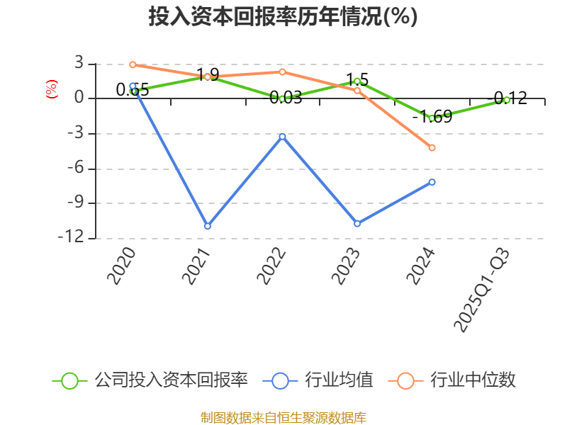 盈利能力方面, 2025年前三季度公司加权平均净资产收益率为0.18%,同比下降1.1个百分点。公司2025年前三季度投入资本回报率为-0.12%,较上年同期下降1个百分点。
