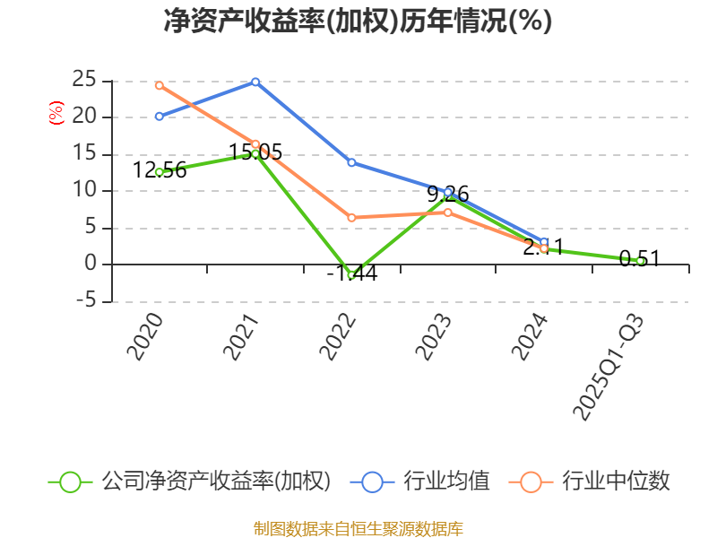 盈利能力方面, 2025年前三季度公司加权平均净资产收益率为0.51%,同比下降3.09个百分点。公司2025年前三季度投入资本回报率为0.2%,较上年同期下降2.76个百分点。