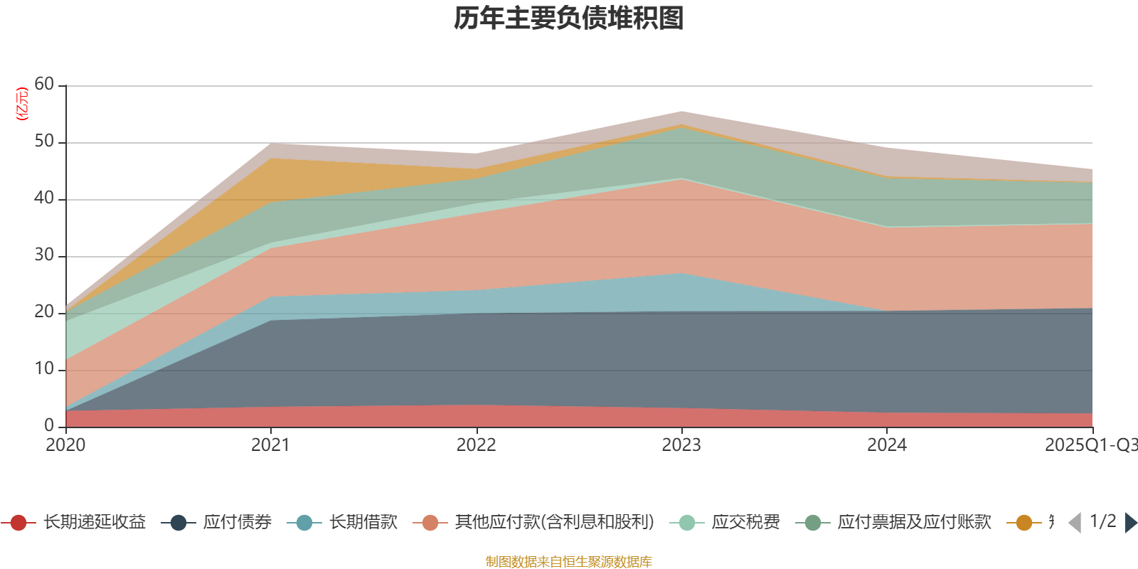 负债重大变化方面,截至2025年三季度末,公司一年内到期的非流动负债较上年末减少96.26%,占公司总资产比重下降1.34个百分点;应付债券较上年末增加3.49%,占公司总资产比重上升0.81个百分点;应付票据及应付账款较上年末减少16.3%,占公司总资产比重下降0.8个百分点;预计负债较上年末减少41.53%,占公司总资产比重下降0.51个百分点。