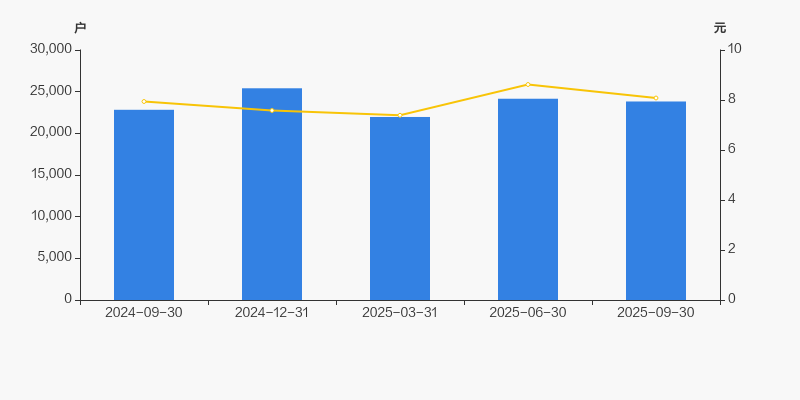 2024年9月30日至今,公司股东户数有所增长,区间涨幅为4.36%。2024年9月30日至2025年9月30日区间股价上涨1.76%。