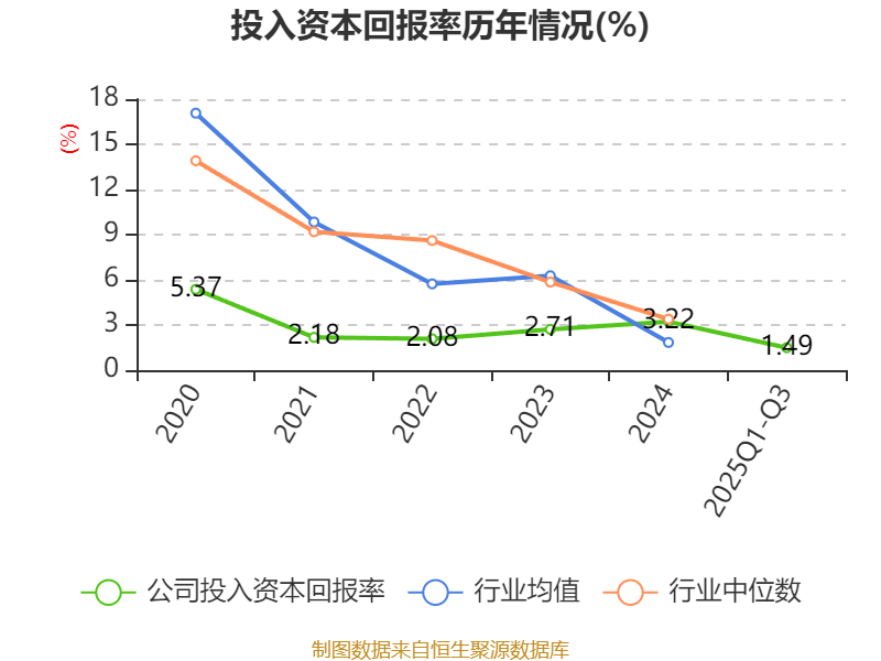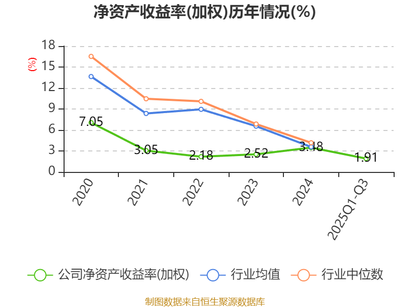 盈利能力方面, 2025年前三季度公司加权平均净资产收益率为1.91%,同比上升0.42个百分点。公司2025年前三季度投入资本回报率为1.49%,较上年同期上升0.23个百分点。