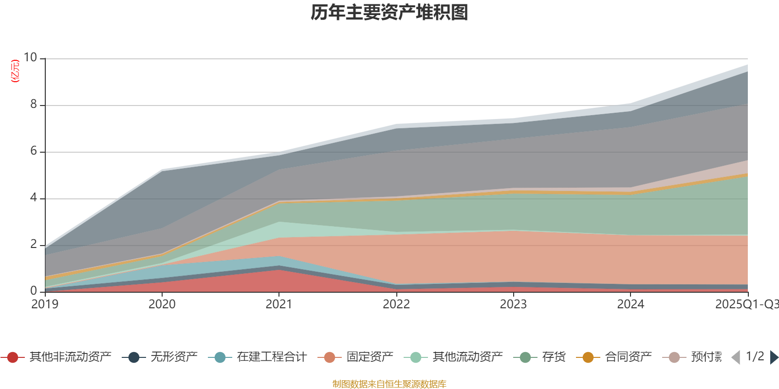 资产重大变化方面,截至2025年三季度末,公司应收票据及应收账款较上年末减少6.38%,占公司总资产比重下降7.17个百分点;货币资金较上年末增加104.96%,占公司总资产比重上升5.83个百分点;固定资产较上年末减少0.37%,占公司总资产比重下降4.51个百分点;存货较上年末增加45.56%,占公司总资产比重上升4.39个百分点。