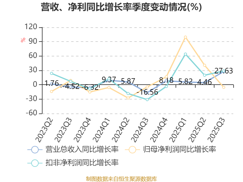 负债重大变化方面,截至2025年三季度末,公司短期借款较上年末增加91.22%,占公司总资产比重上升5.89个百分点;应付票据及应付账款较上年末增加15.28%,占公司总资产比重上升0.84个百分点;长期递延收益较上年末减少2.68%,占公司总资产比重下降0.1个百分点;递延所得税负债较上年末减少19.59%,占公司总资产比重下降0.09个百分点。