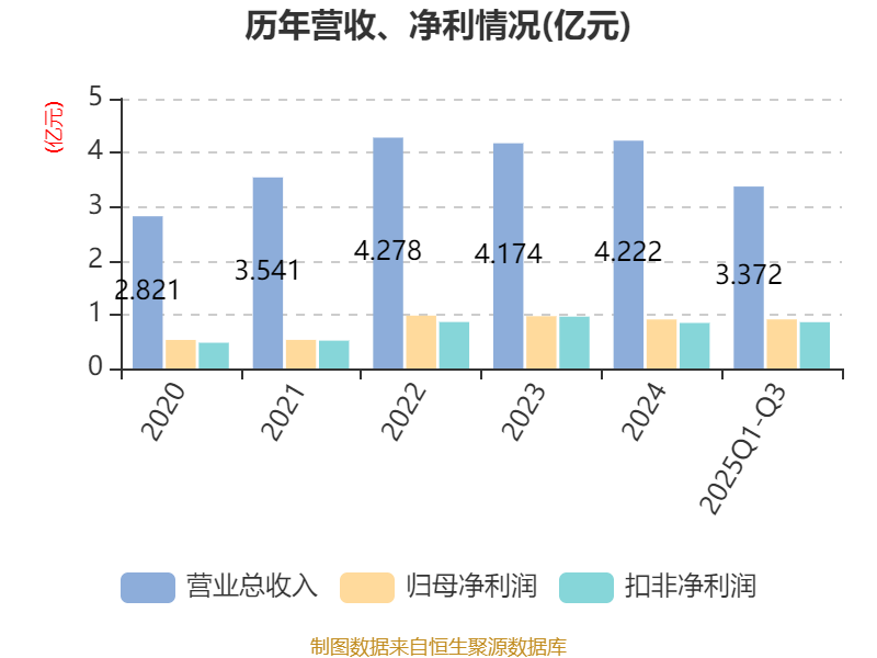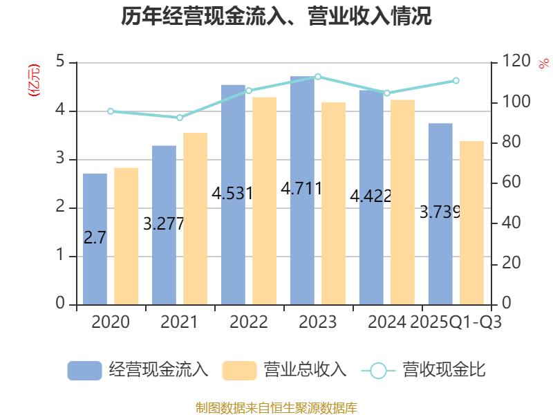 2025年前三季度,公司流动比率为2.72,速动比率为2.57。