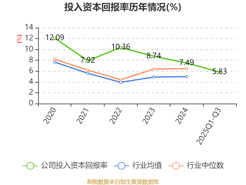 盈利能力方面, 2025年前三季度公司加权平均净资产收益率为8.85%,同比上升2.11个百分点。公司2025年前三季度投入资本回报率为5.83%,较上年同期上升0.56个百分点。