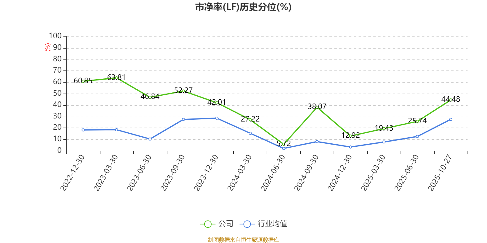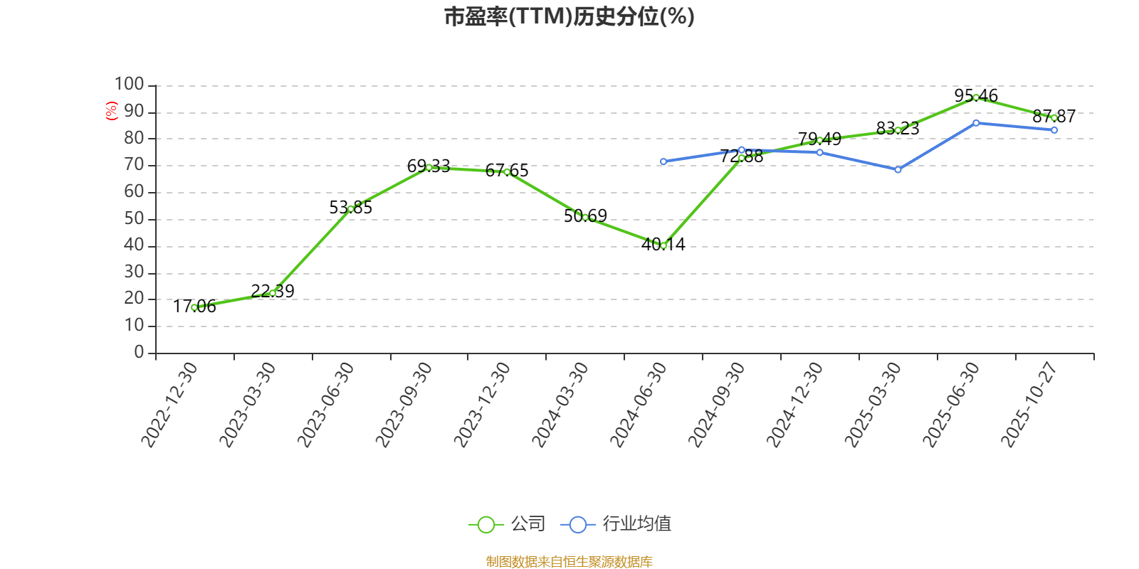 市盈率、市净率为负时,不显示当期分位数,会导致折线图中断。