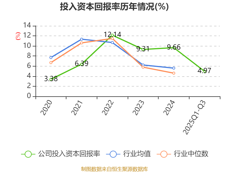 盈利能力方面, 2025年前三季度公司加权平均净资产收益率为6.72%,同比下降4.19个百分点。公司2025年前三季度投入资本回报率为4.97%,较上年同期下降3.05个百分点。