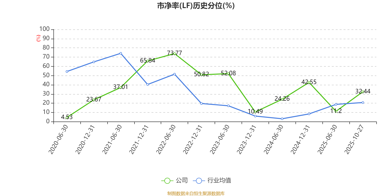 市盈率、市净率为负时,不显示当期分位数,会导致折线图中断。