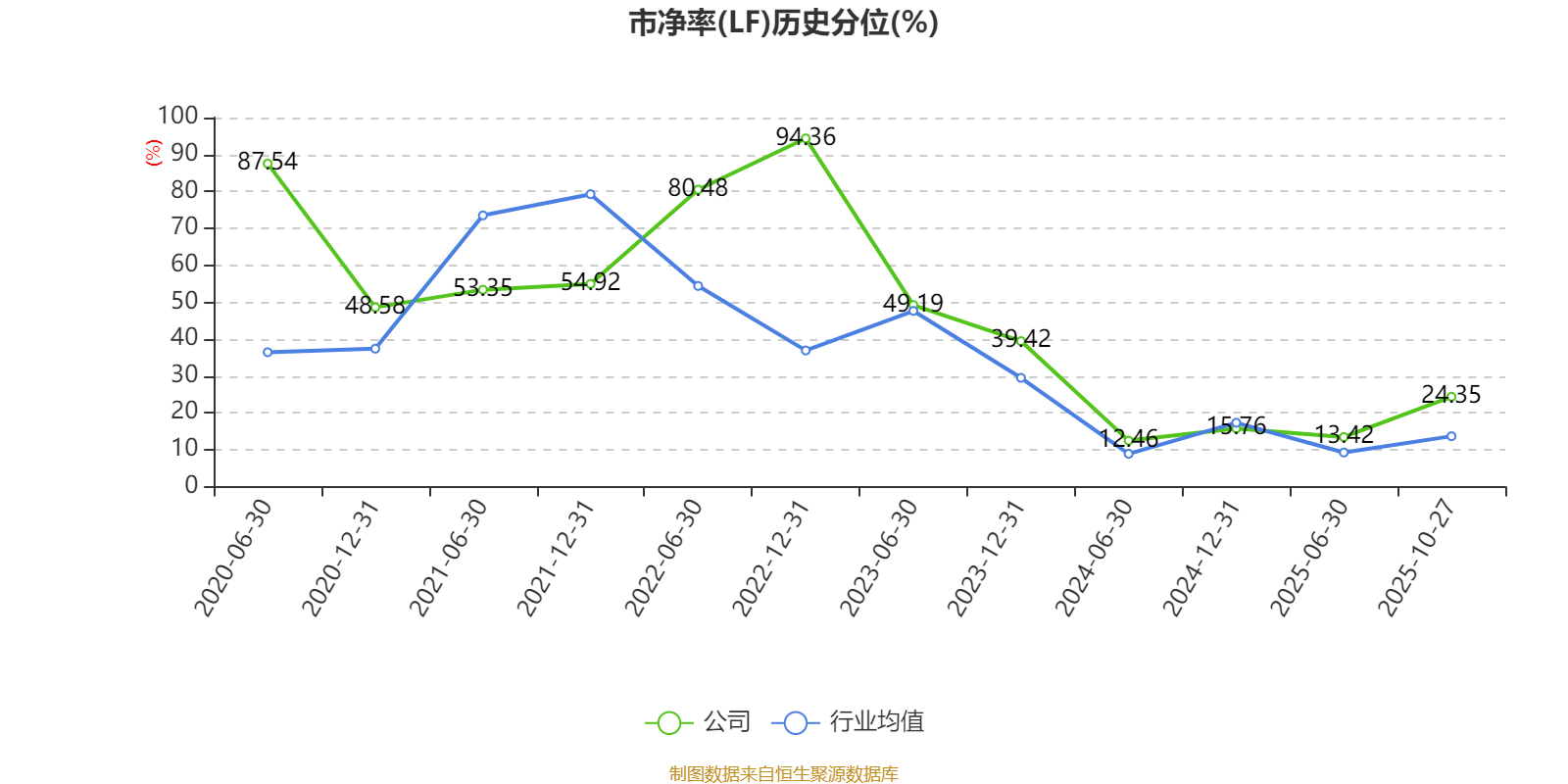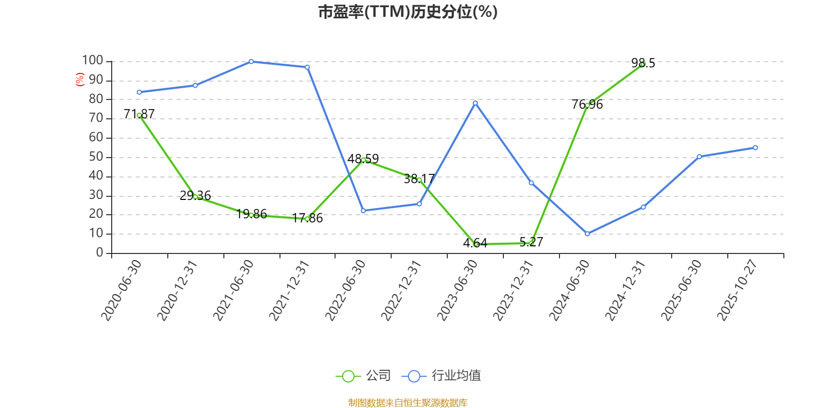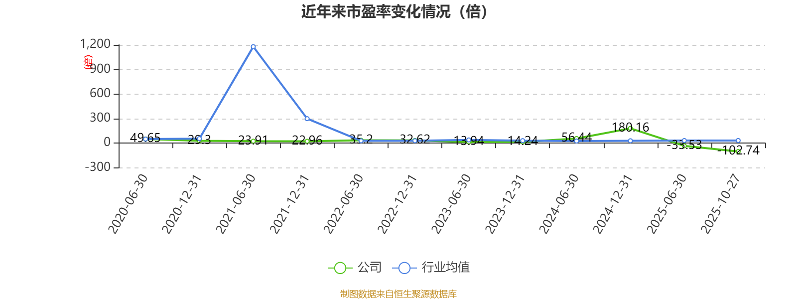 市盈率、市净率为负时,不显示当期分位数,会导致折线图中断。