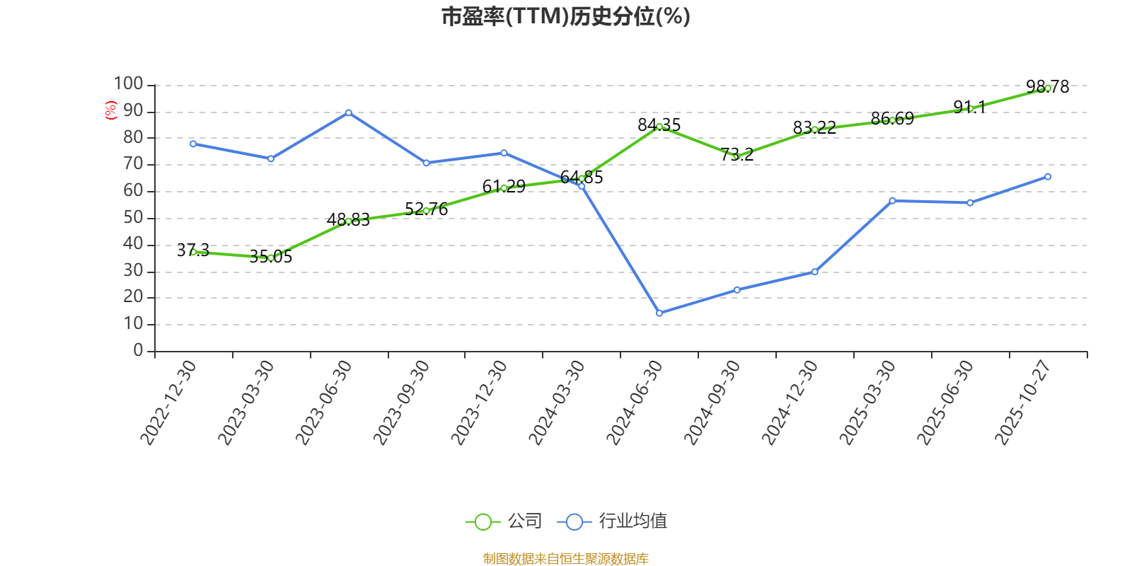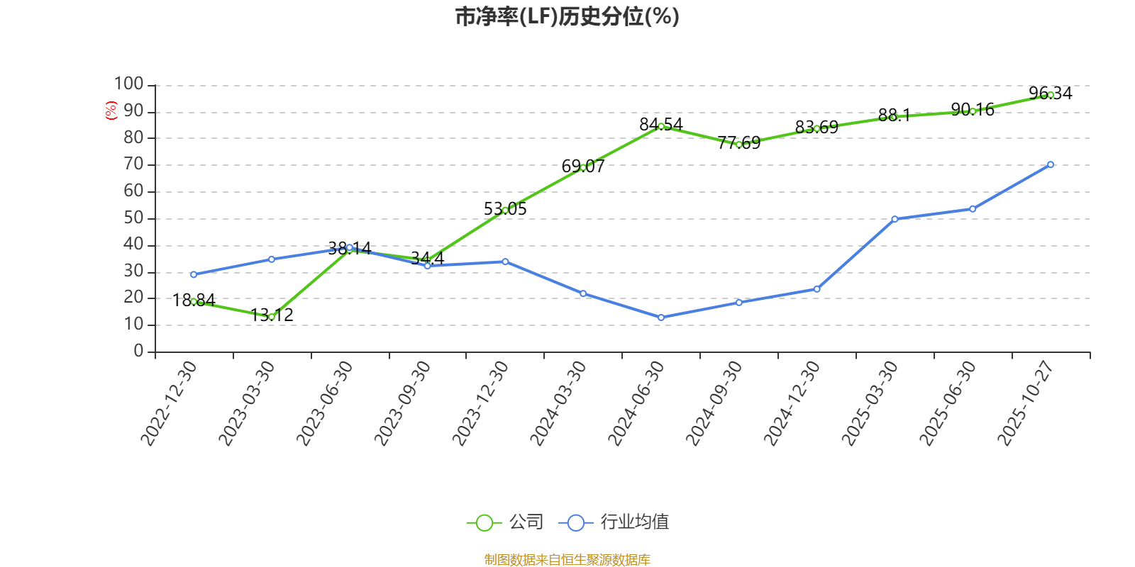 市盈率、市净率为负时,不显示当期分位数,会导致折线图中断。