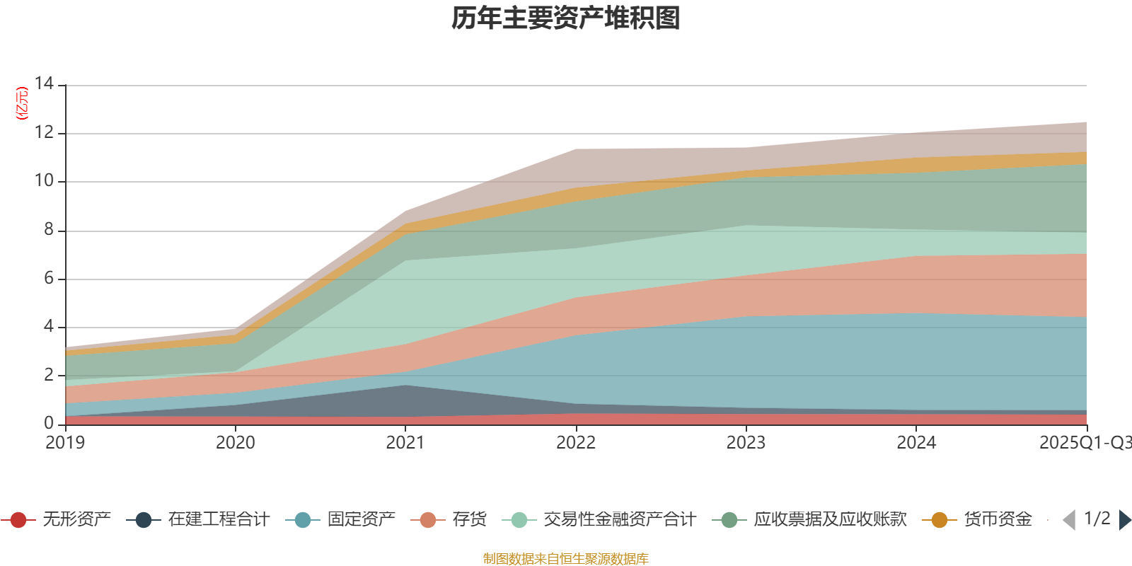 资产重大变化方面,截至2025年三季度末,公司应收票据及应收账款较上年末增加20.6%,占公司总资产比重上升3.2个百分点;固定资产较上年末减少3.9%,占公司总资产比重下降2.4个百分点;交易性金融资产合计较上年末减少19.43%,占公司总资产比重下降2个百分点;应收款项融资较上年末增加101.94%,占公司总资产比重上升1.86个百分点。