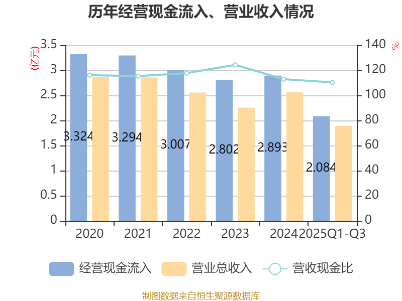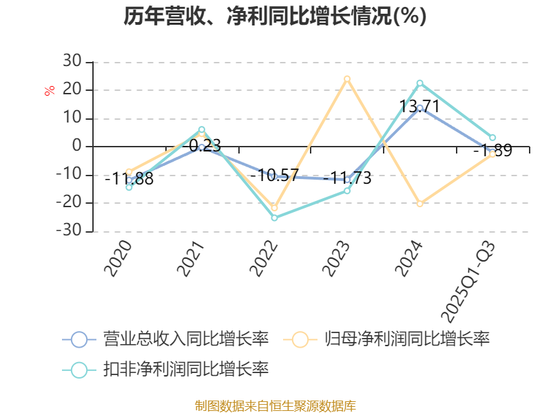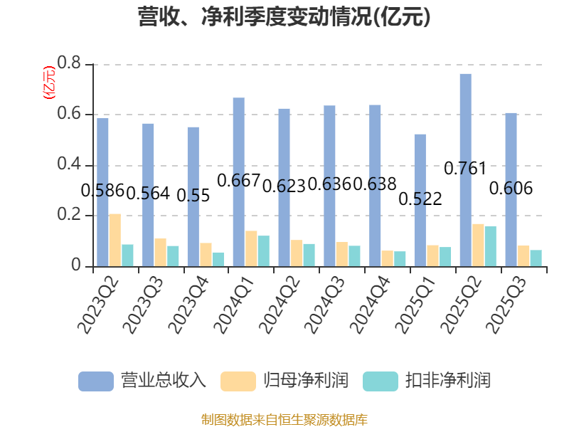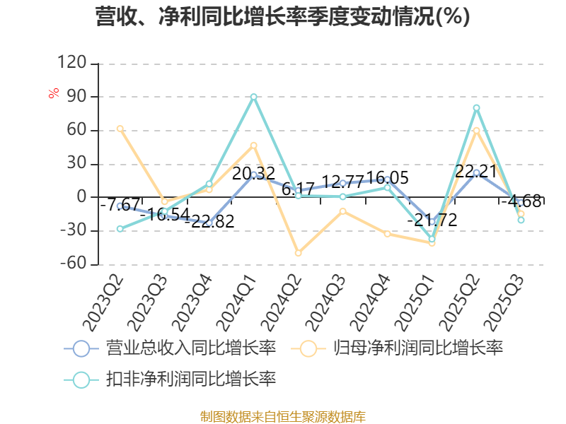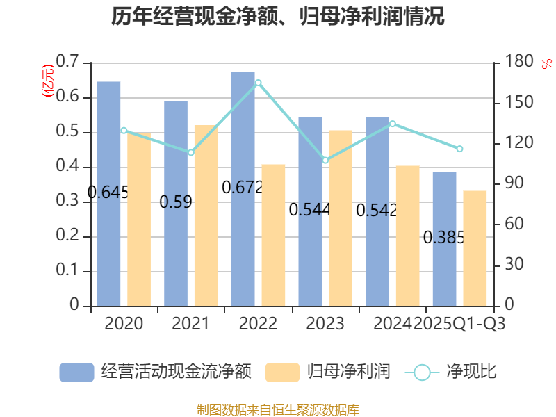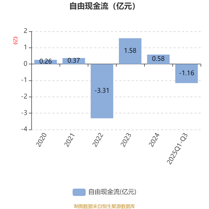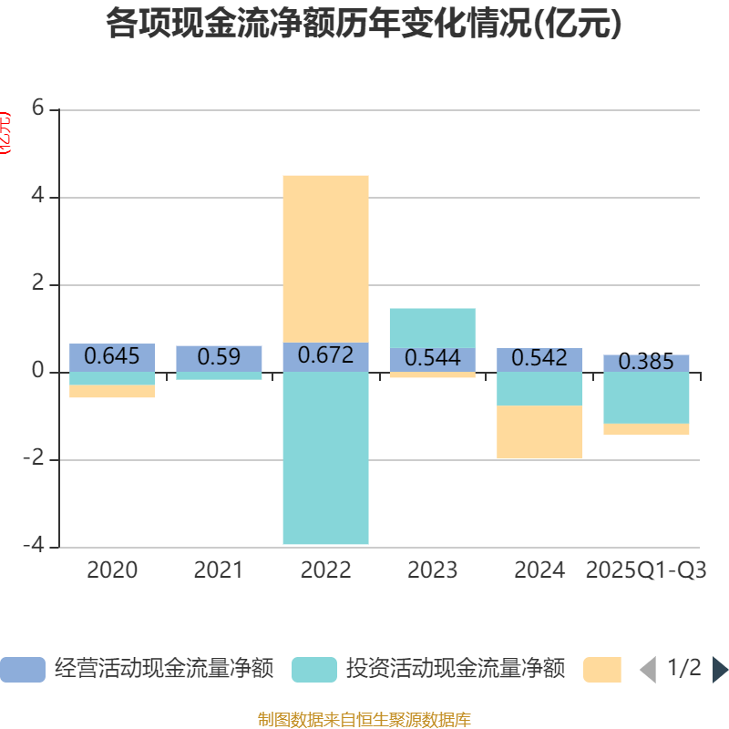 2025年前三季度,公司经营活动现金流净额为3851万元,同比下降16.43%;筹资活动现金流净额-2543.89万元,同比增加9323.62万元;投资活动现金流净额-1.18亿元,上年同期为-1.09亿元。