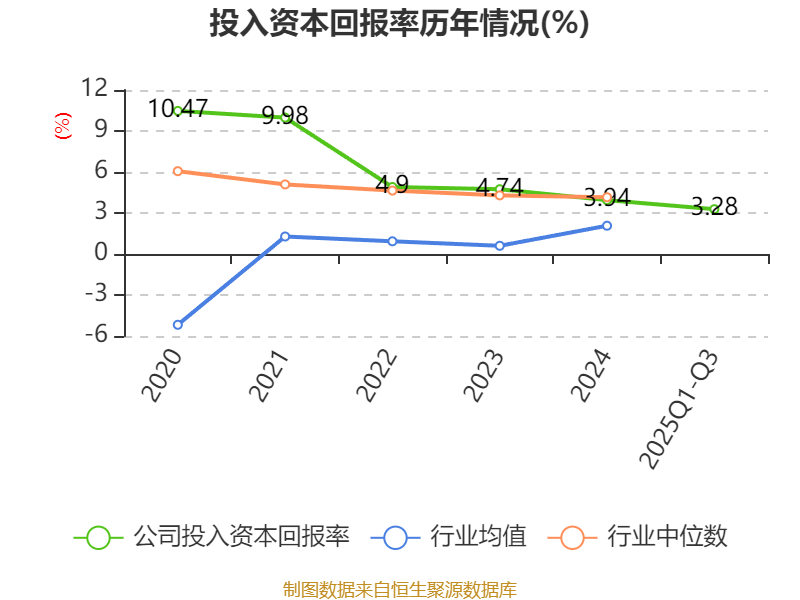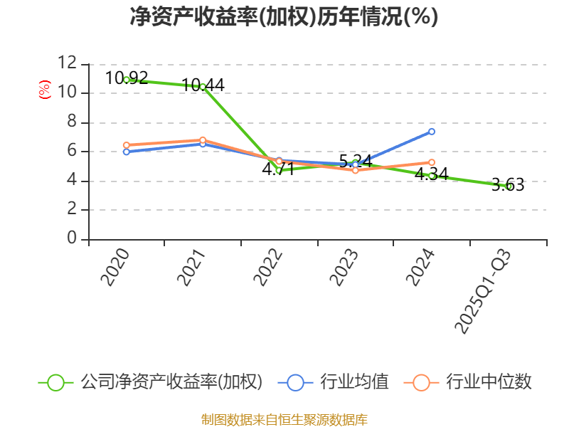 盈利能力方面, 2025年前三季度公司加权平均净资产收益率为3.63%,同比下降0.01个百分点。公司2025年前三季度投入资本回报率为3.28%,较上年同期下降0.13个百分点。
