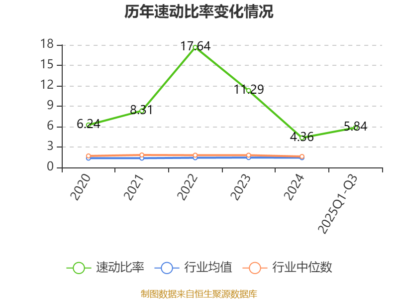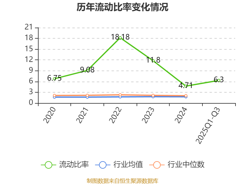 2025年前三季度,公司流动比率为6.3,速动比率为5.84。