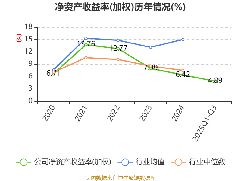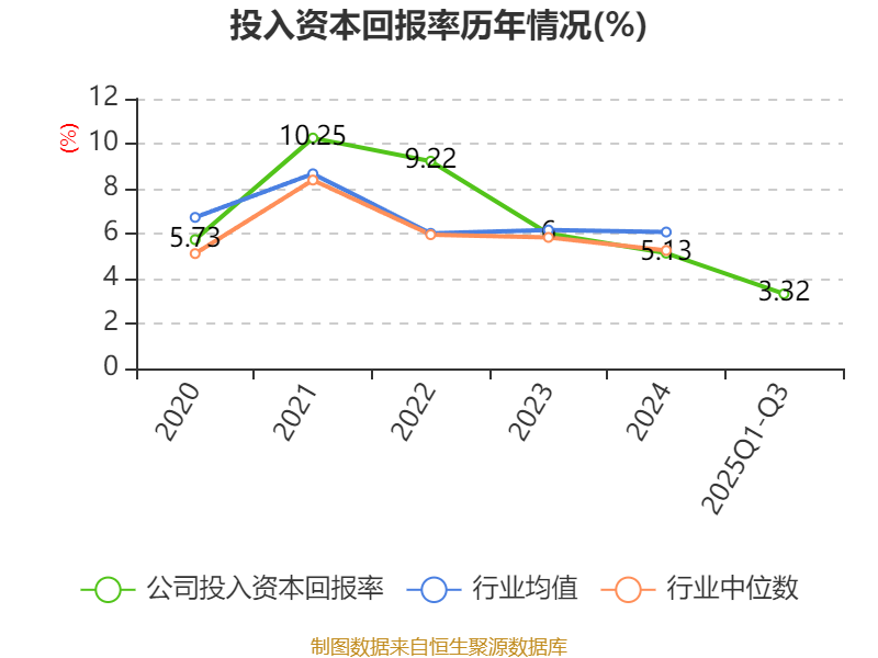 盈利能力方面, 2025年前三季度公司加权平均净资产收益率为4.89%,同比上升0.21个百分点。公司2025年前三季度投入资本回报率为3.32%,较上年同期下降0.32个百分点。