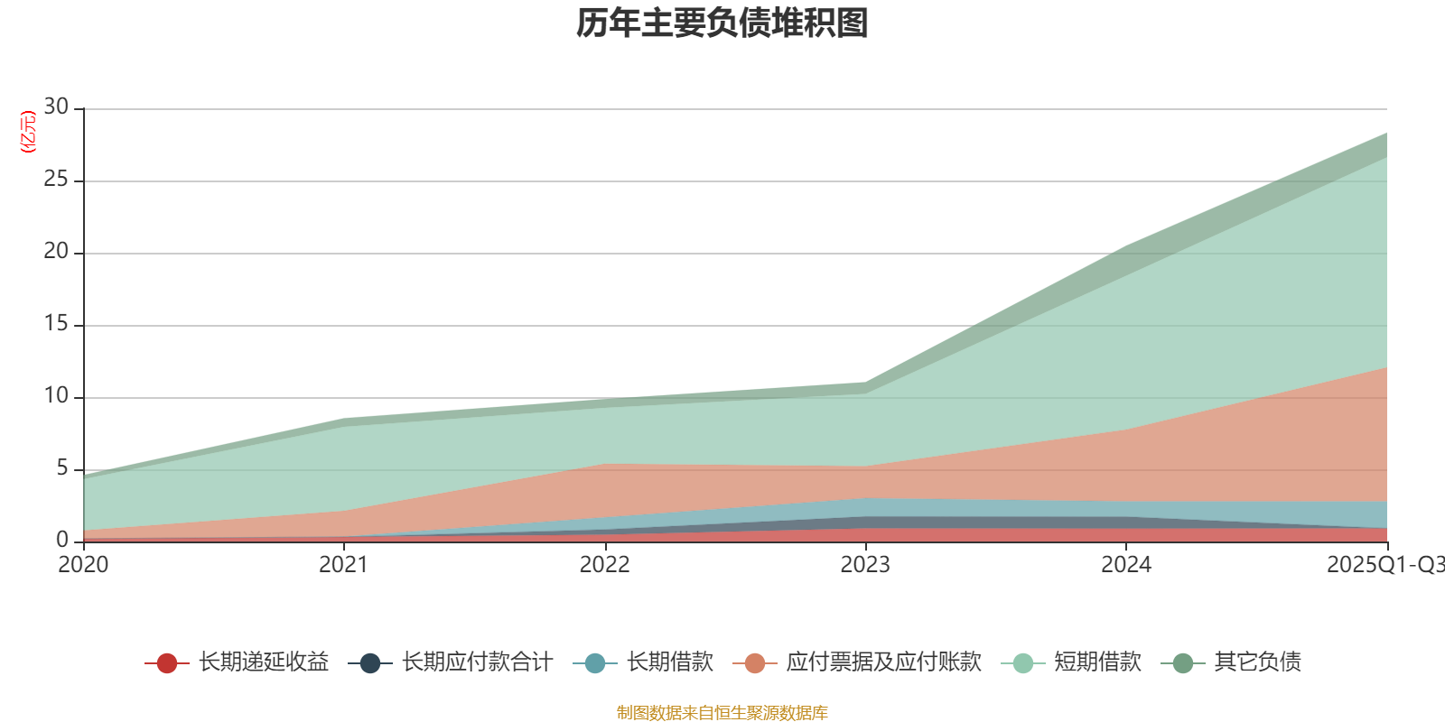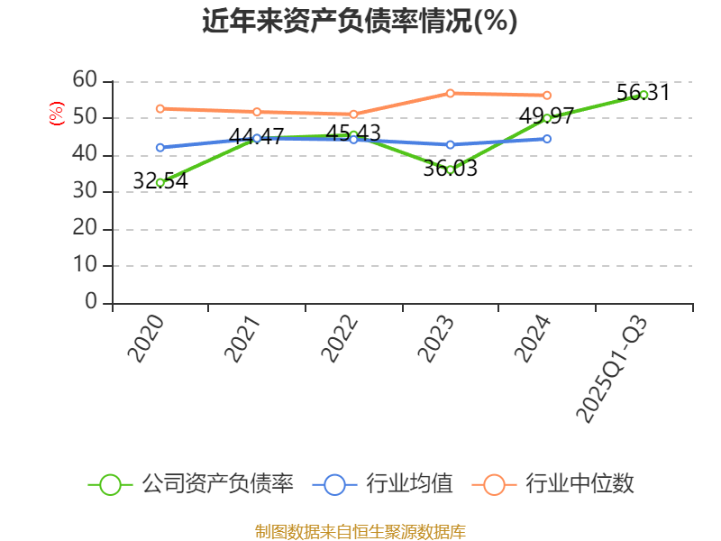 负债重大变化方面,截至2025年三季度末,公司应付票据及应付账款较上年末增加86.44%,占公司总资产比重上升6.3个百分点;短期借款较上年末增加36.6%,占公司总资产比重上升2.95个百分点;长期应付款合计较上年末减少100%,占公司总资产比重下降2.01个百分点;长期借款较上年末增加76.51%,占公司总资产比重上升1.14个百分点。