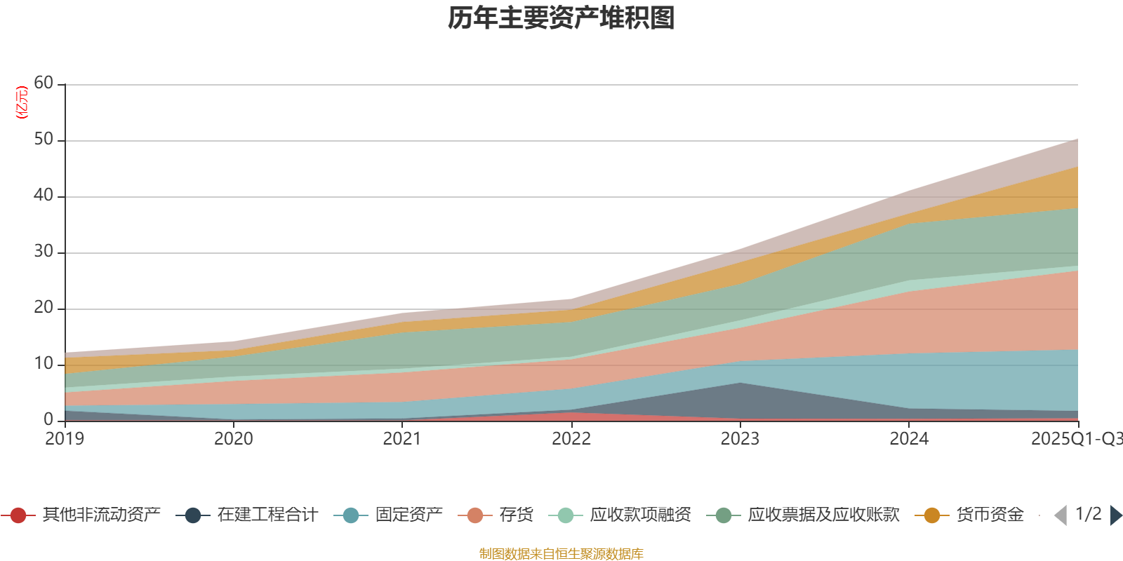 资产重大变化方面,截至2025年三季度末,公司货币资金较上年末增加305.57%,占公司总资产比重上升10.3个百分点;应收票据及应收账款较上年末增加1.85%,占公司总资产比重下降4.17个百分点;应收款项融资较上年末减少55.61%,占公司总资产比重下降3.1个百分点;固定资产较上年末增加11.43%,占公司总资产比重下降2.19个百分点。
