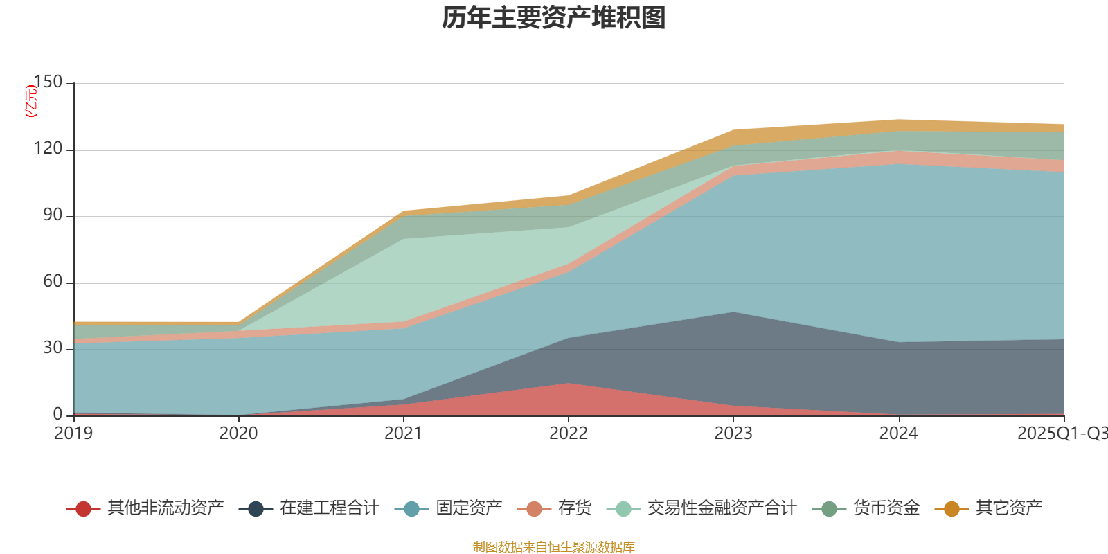 资产重大变化方面,截至2025年三季度末,公司货币资金较上年末增加49.11%,占公司总资产比重上升3.26个百分点;固定资产较上年末减少6.24%,占公司总资产比重下降2.83个百分点;在建工程合计较上年末增加3.23%,占公司总资产比重上升1.2个百分点;其他流动资产较上年末减少92%,占公司总资产比重下降0.86个百分点。