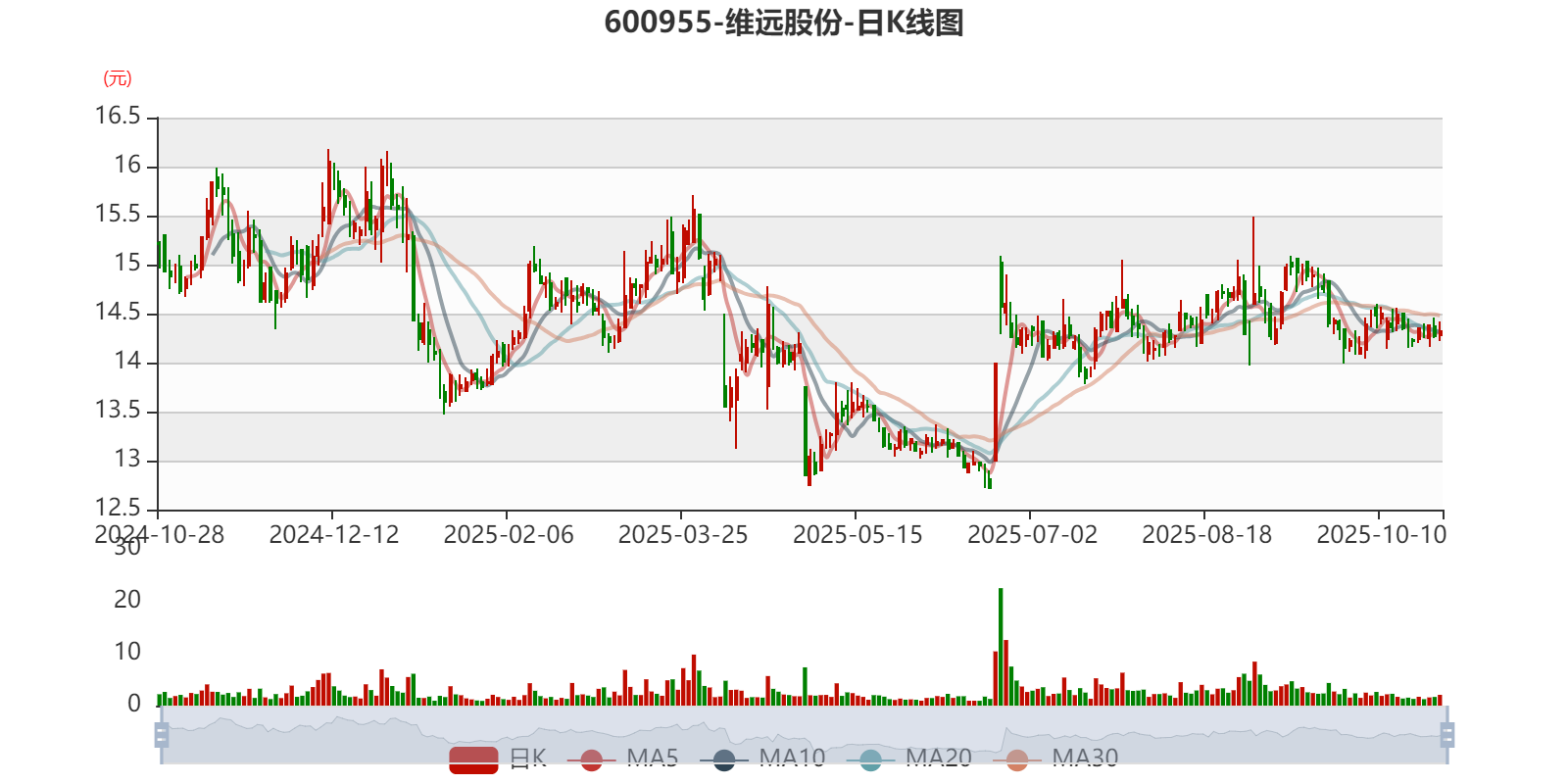 以10月27日收盘价计算,维远股份目前市盈率(TTM)约为-37.39倍,市净率(LF)约0.94倍,市销率(TTM)约0.87倍。