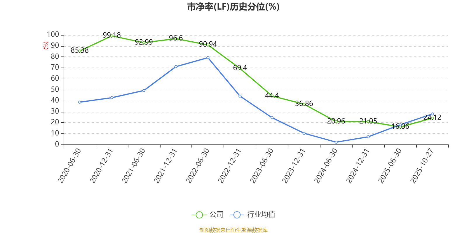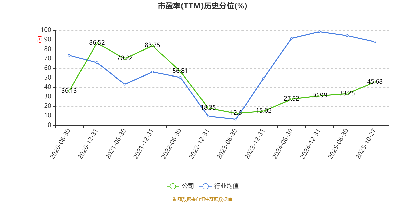市盈率、市净率为负时,不显示当期分位数,会导致折线图中断。
