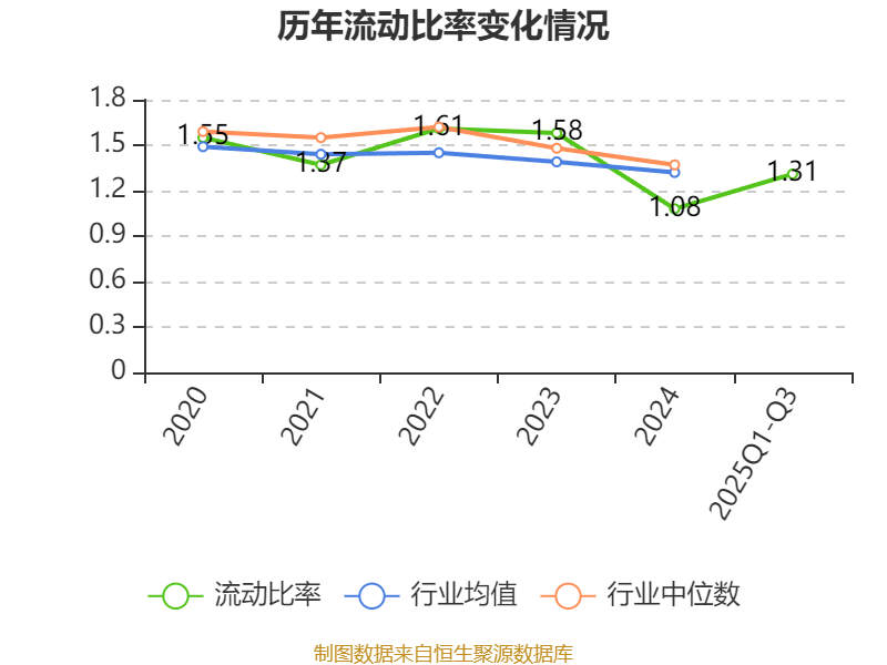 2025年前三季度,公司流动比率为1.31,速动比率为1.16。