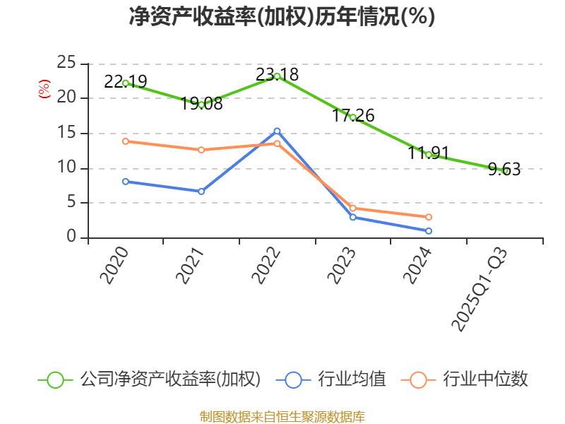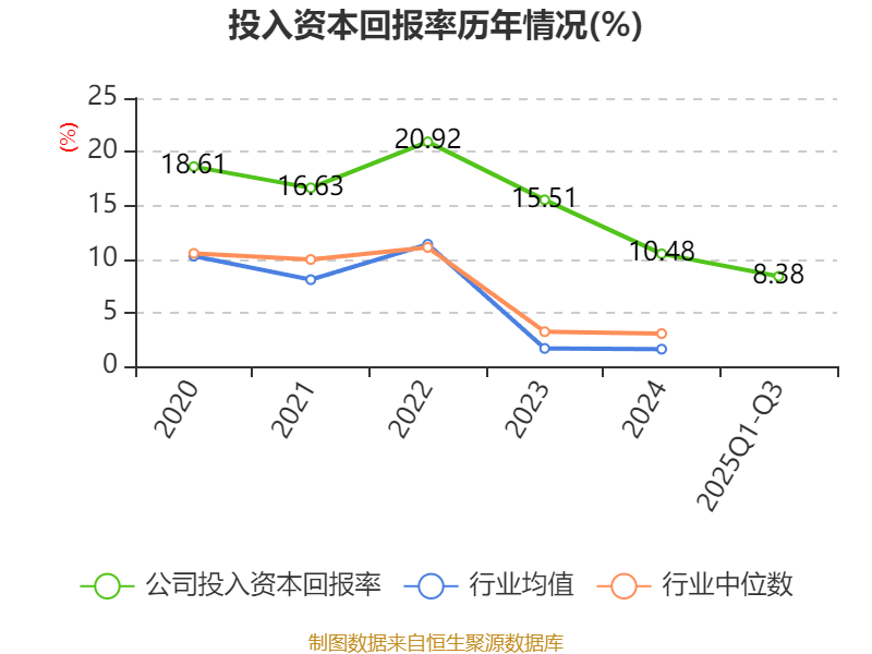 盈利能力方面, 2025年前三季度公司加权平均净资产收益率为9.63%,同比下降0.58个百分点。公司2025年前三季度投入资本回报率为8.38%,较上年同期下降1个百分点。