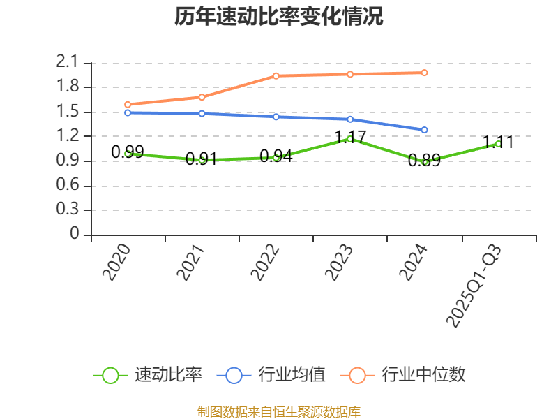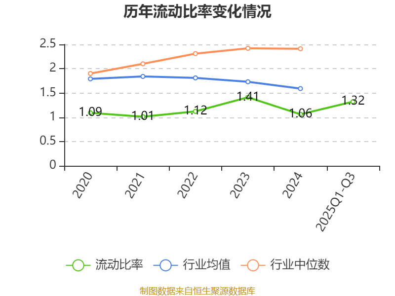 2025年前三季度,公司流动比率为1.32,速动比率为1.11。
