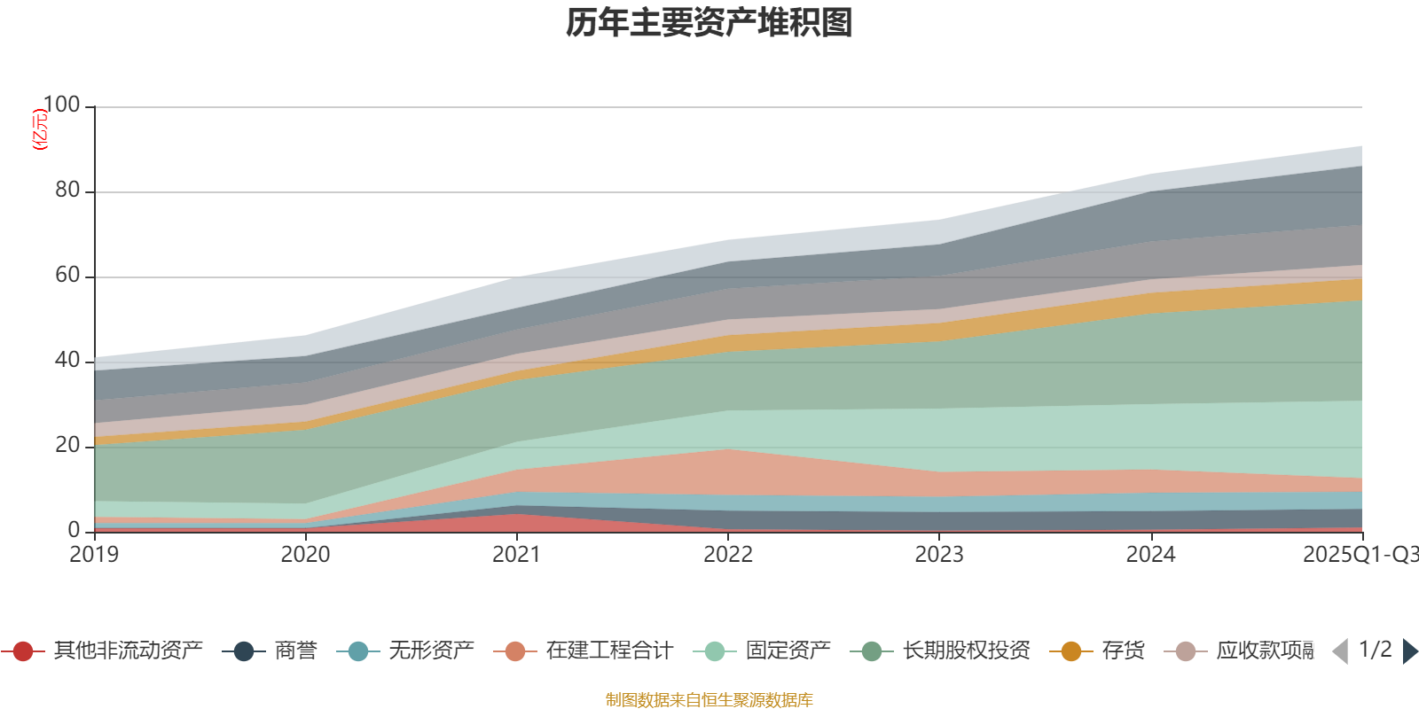 资产重大变化方面,截至2025年三季度末,公司在建工程合计较上年末减少41.21%,占公司总资产比重下降2.96个百分点;固定资产较上年末增加18.11%,占公司总资产比重上升1.74个百分点;货币资金较上年末增加18.36%,占公司总资产比重上升1.36个百分点;长期股权投资较上年末增加10.73%,占公司总资产比重上升0.68个百分点。