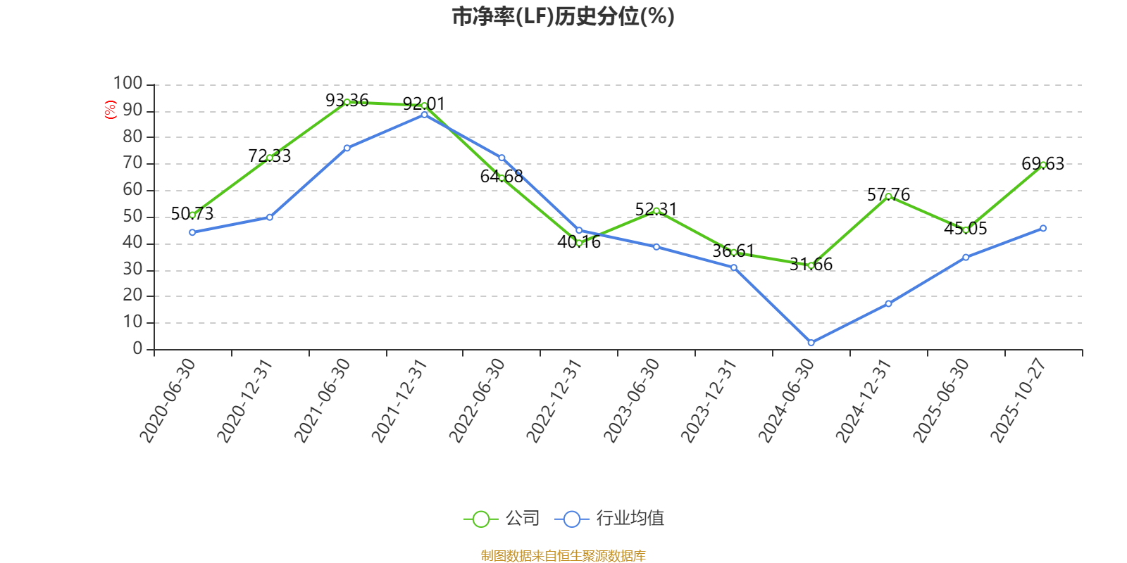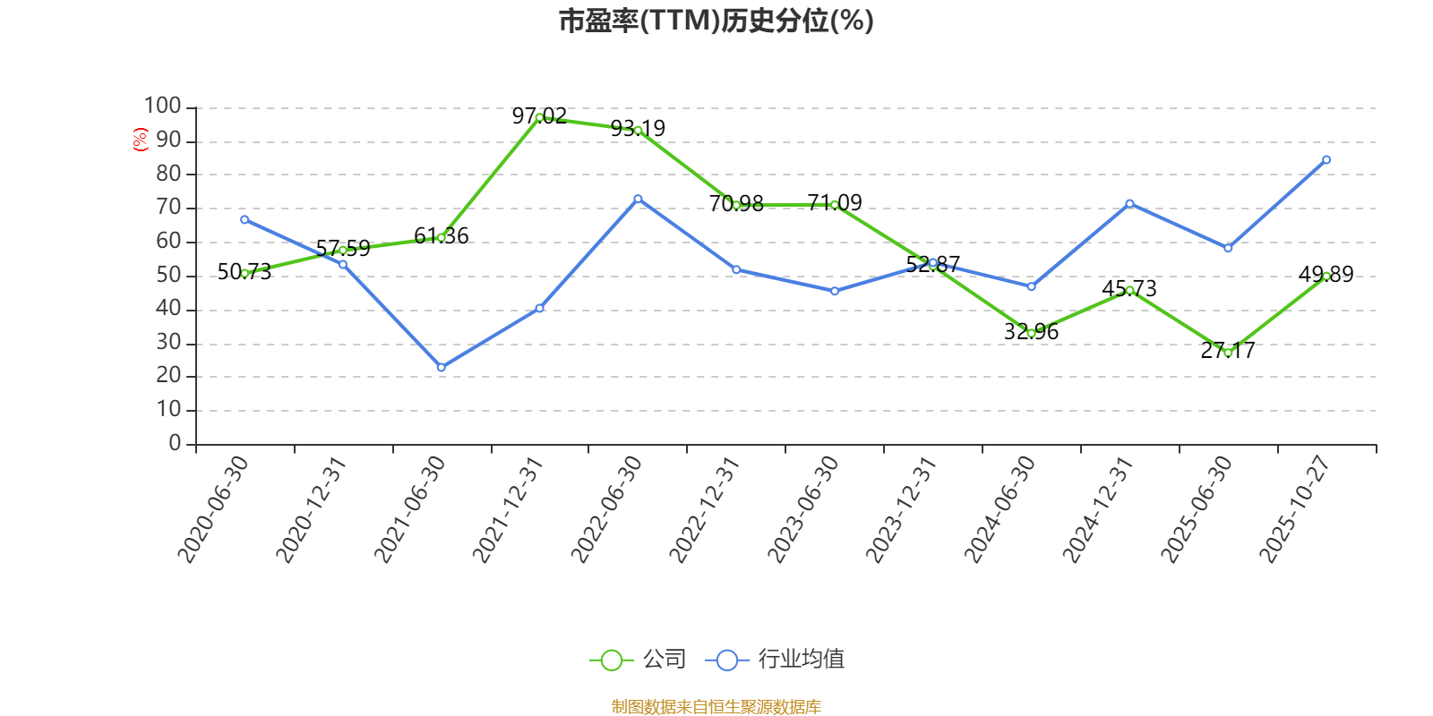 市盈率、市净率为负时,不显示当期分位数,会导致折线图中断。